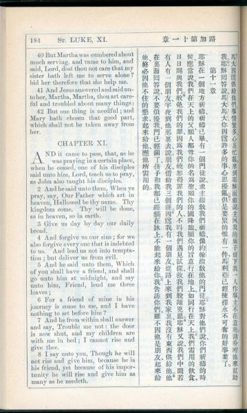 1908年新约全书(中西字) 路加福音 10 章 40 节到 11 章 8 节