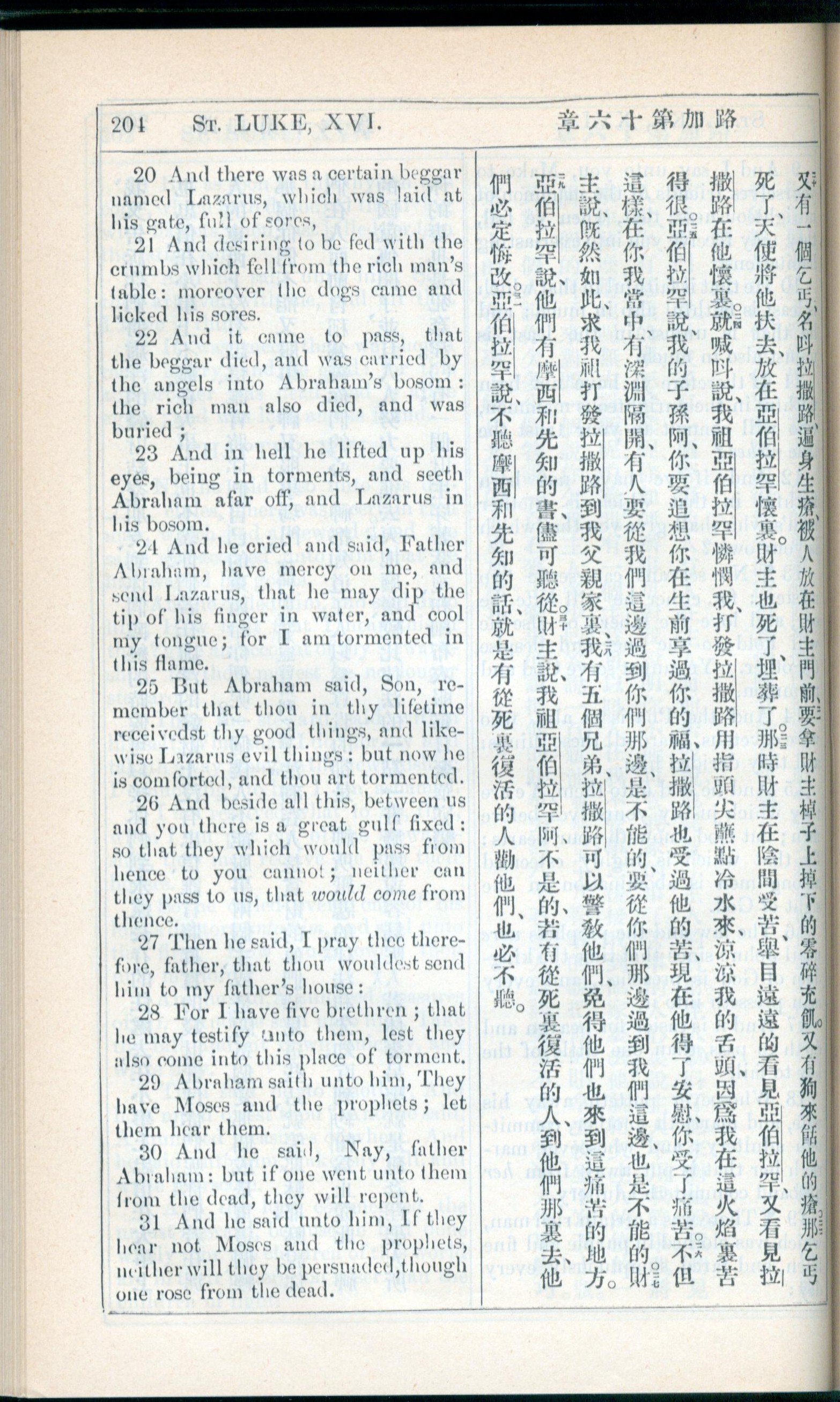 1908年新约全书(中西字) 路加福音 16 章 20 节到 16 章 31 节
