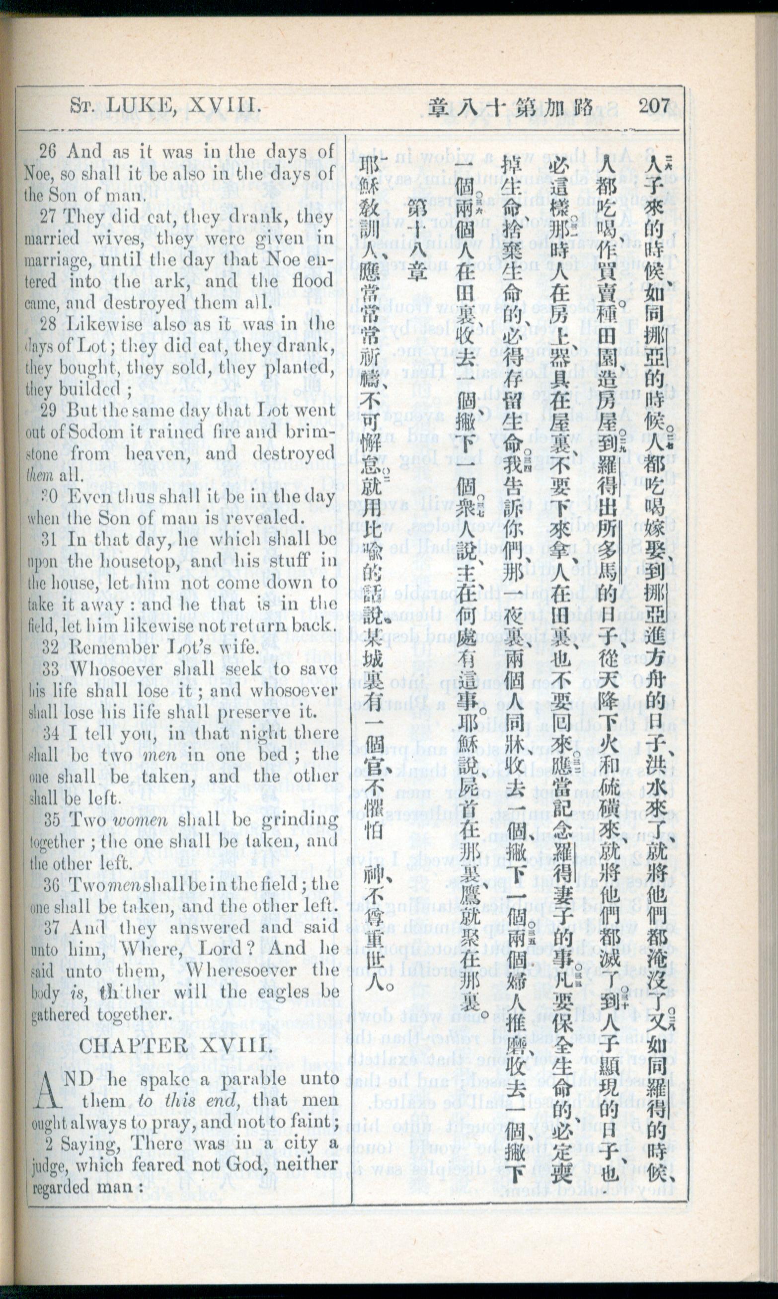 1908年新约全书(中西字) 路加福音 17 章 26 节到 18 章 2 节