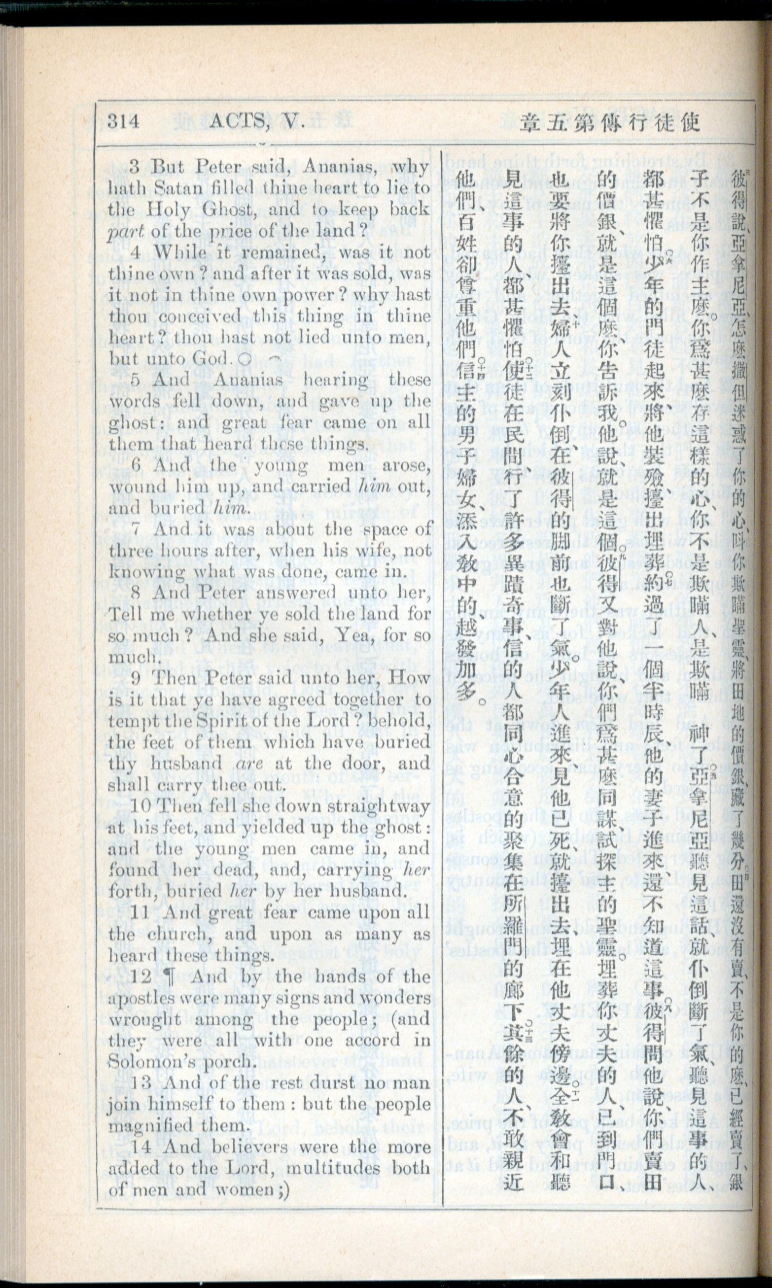 1908年新约全书(中西字) 使徒行传 5 章 3 节到 5 章 14 节