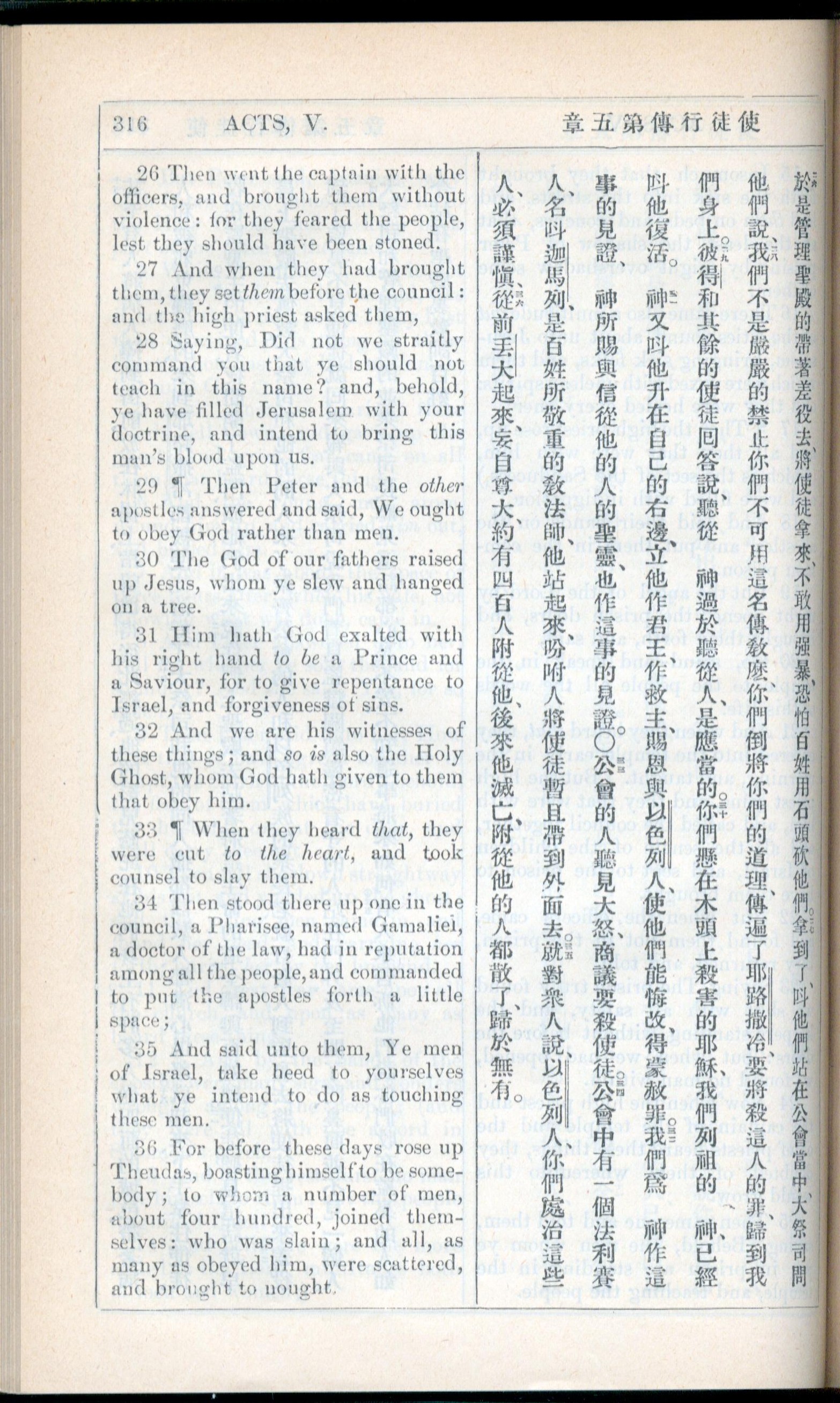 1908年新约全书(中西字) 使徒行传 5 章 26 节到 5 章 36 节