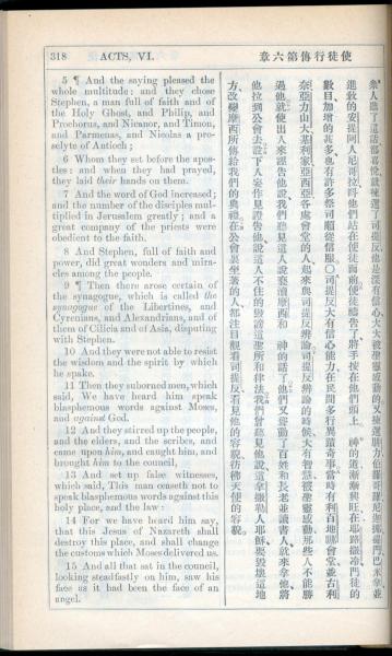 1908年新约全书(中西字) 使徒行传 6 章 5 节到 6 章 15 节