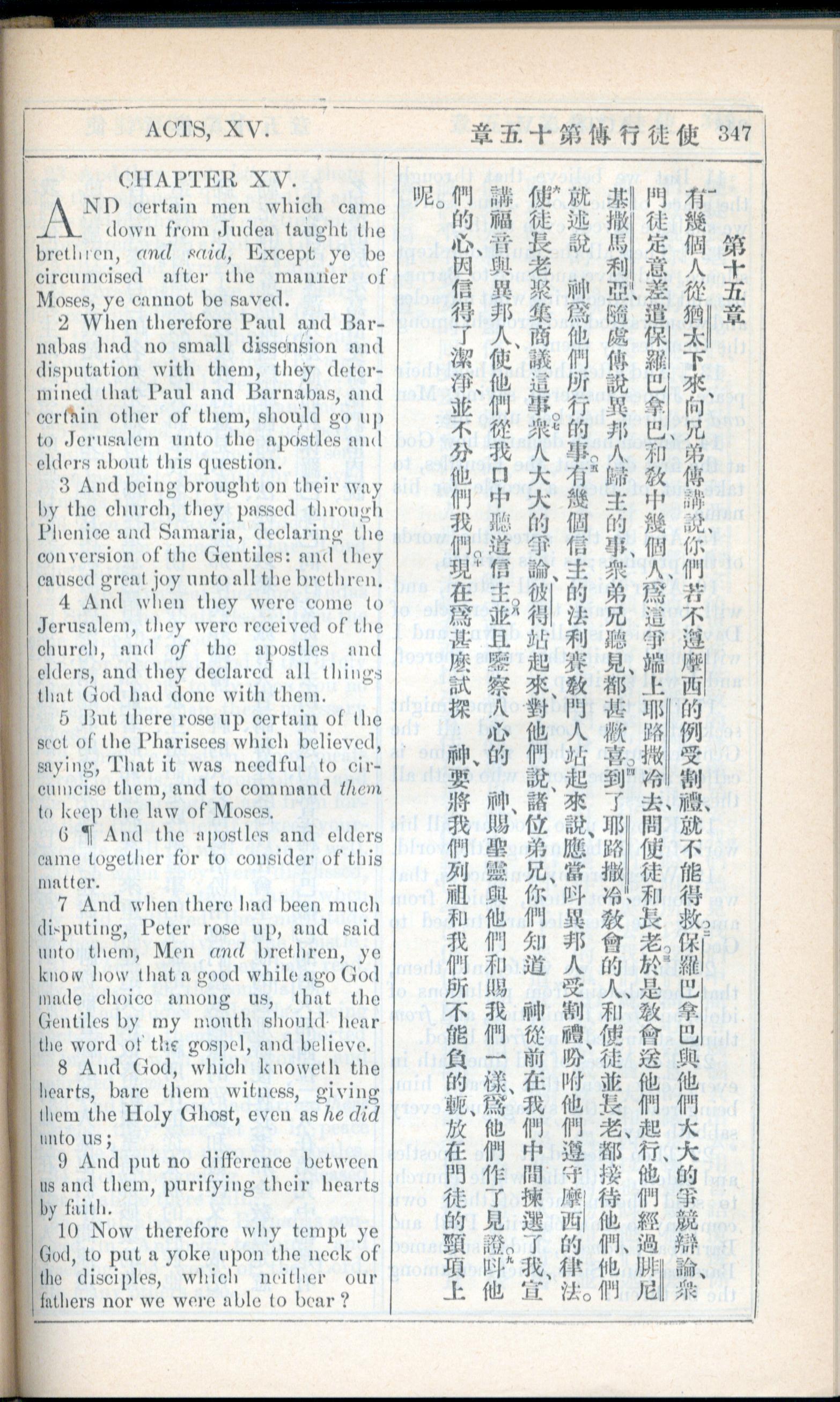 1908年新约全书(中西字) 使徒行传 15 章 1 节到 15 章 10 节