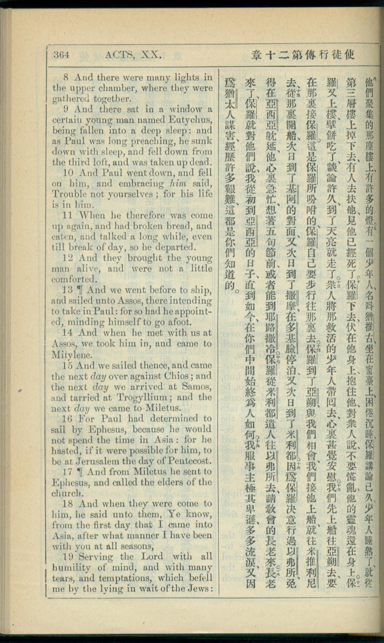 1908年新约全书(中西字) 使徒行传 20 章 8 节到 20 章 19 节