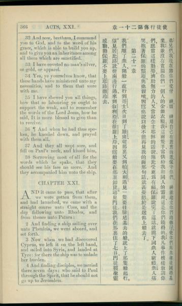 1908年新约全书(中西字) 使徒行传 20 章 32 节到 21 章 4 节