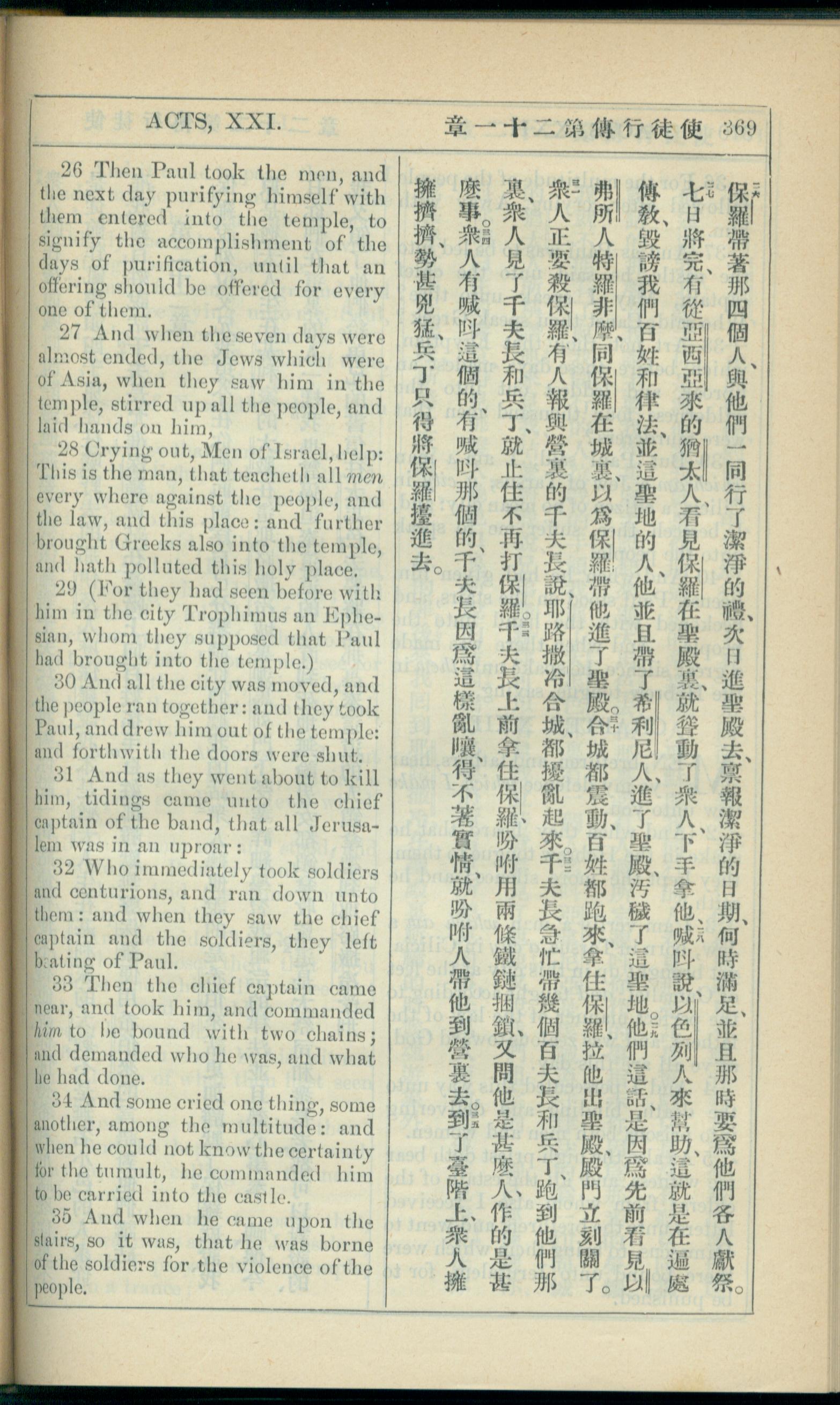 1908年新约全书(中西字) 使徒行传 21 章 26 节到 21 章 35 节