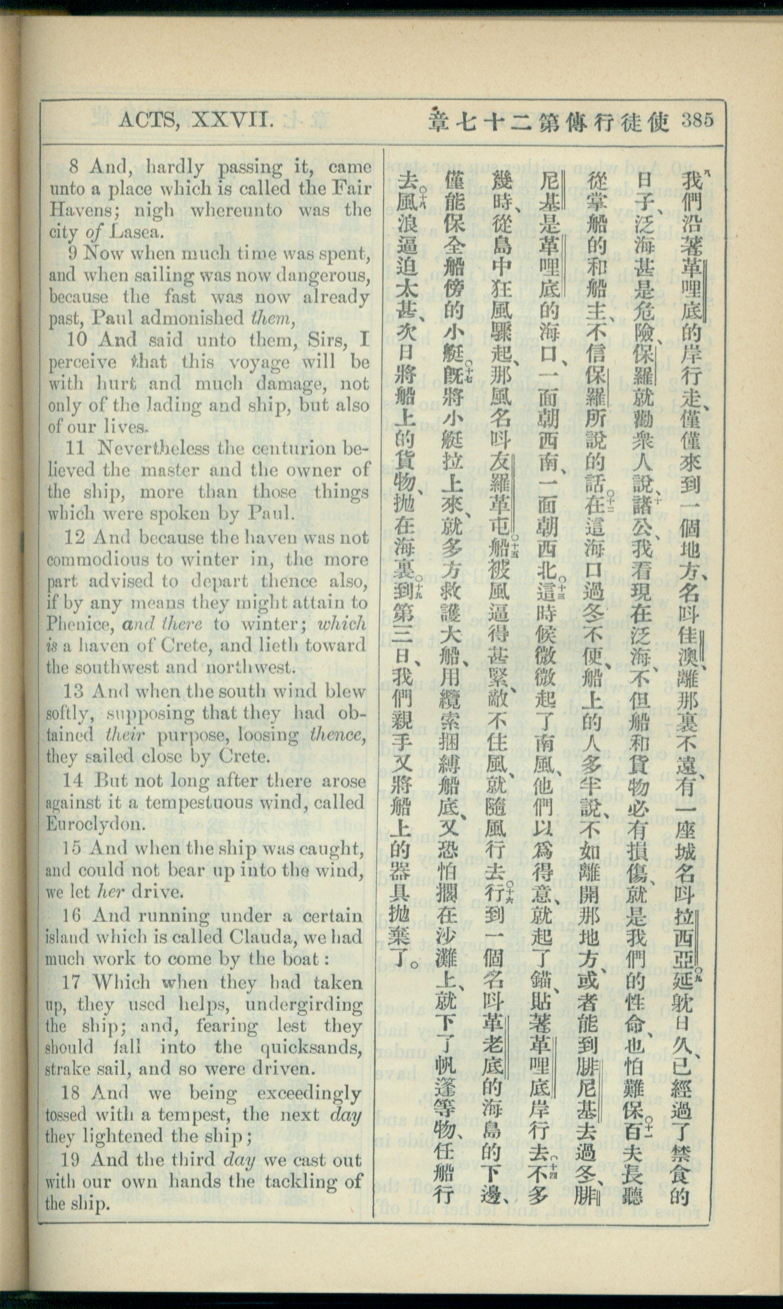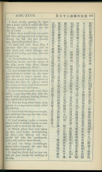 1908年新约全书(中西字) 使徒行传 27 章 8 节到 27 章 19 节