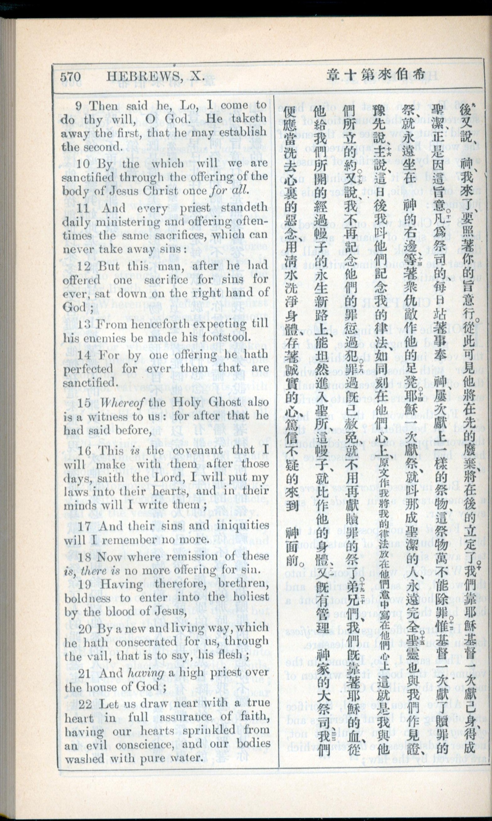 1908年新约全书(中西字) 希伯来书 10 章 9 节到 10 章 22 节