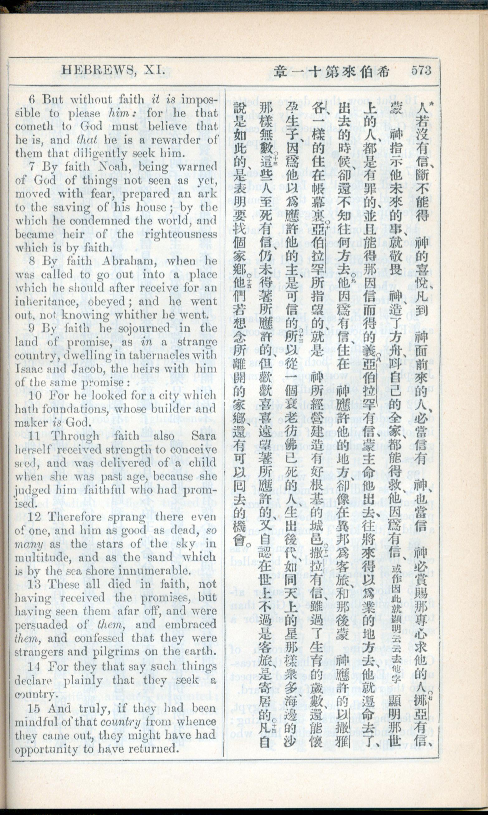 1908年新约全书(中西字) 希伯来书 11 章 6 节到 11 章 15 节