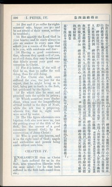 1908年新约全书(中西字) 彼得前书 3 章 14 节到 4 章 1 节