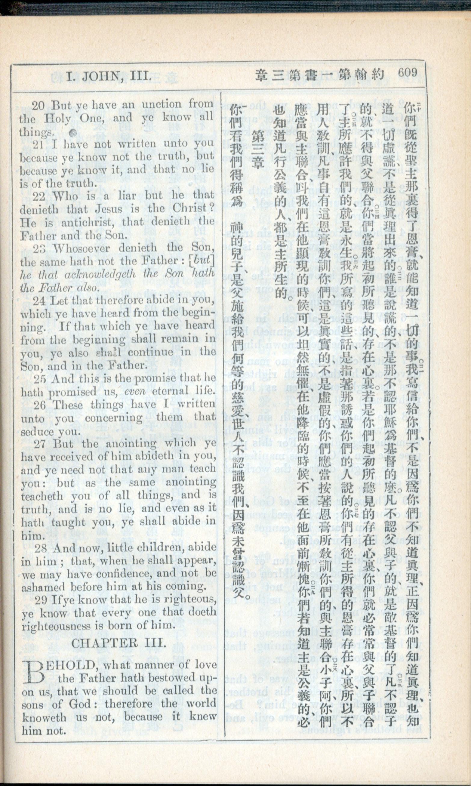 1908年新约全书(中西字) 约翰一书 2 章 20 节到 3 章 1 节