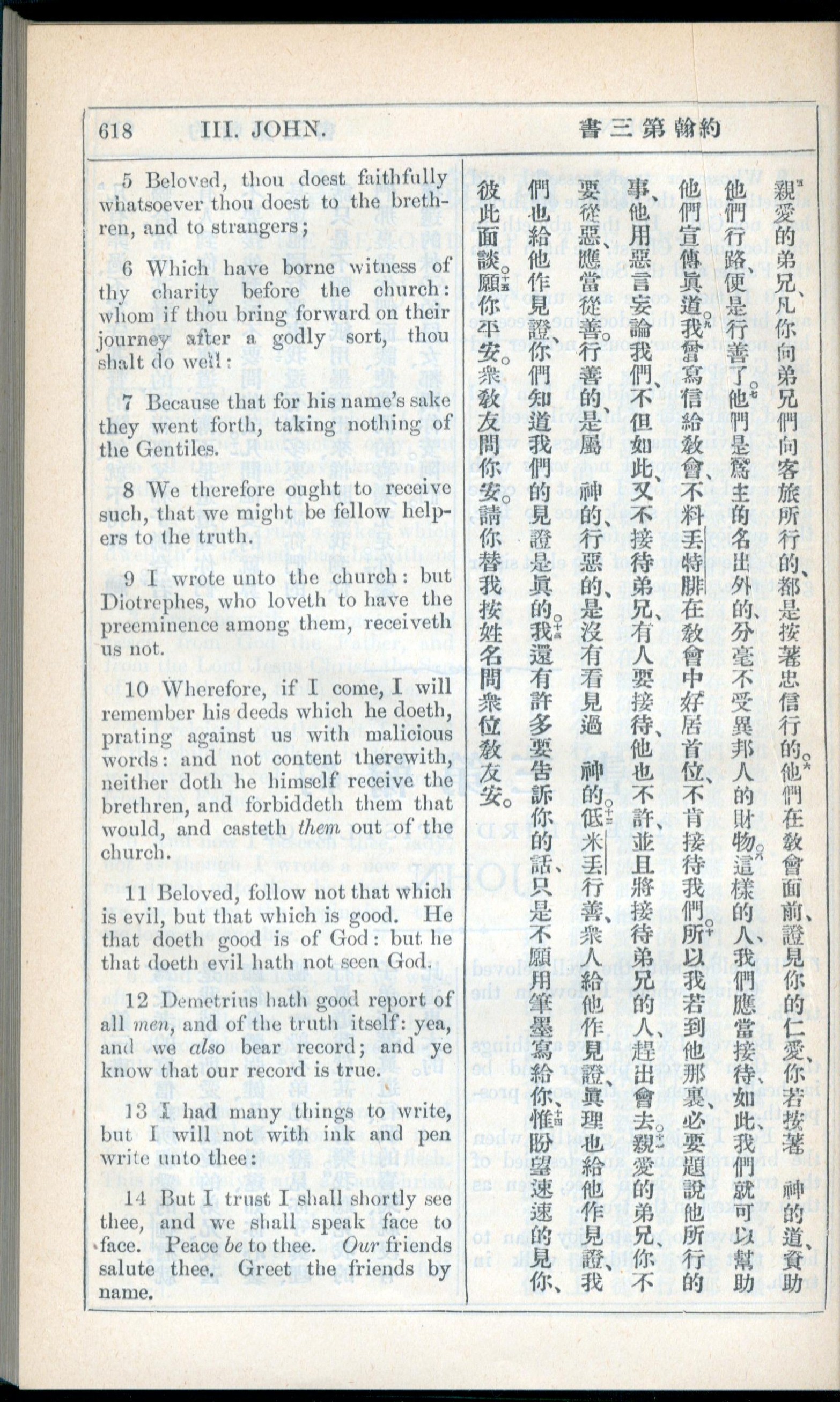 1908年新约全书(中西字) 约翰三书 1 章 5 节到 1 章 14 节