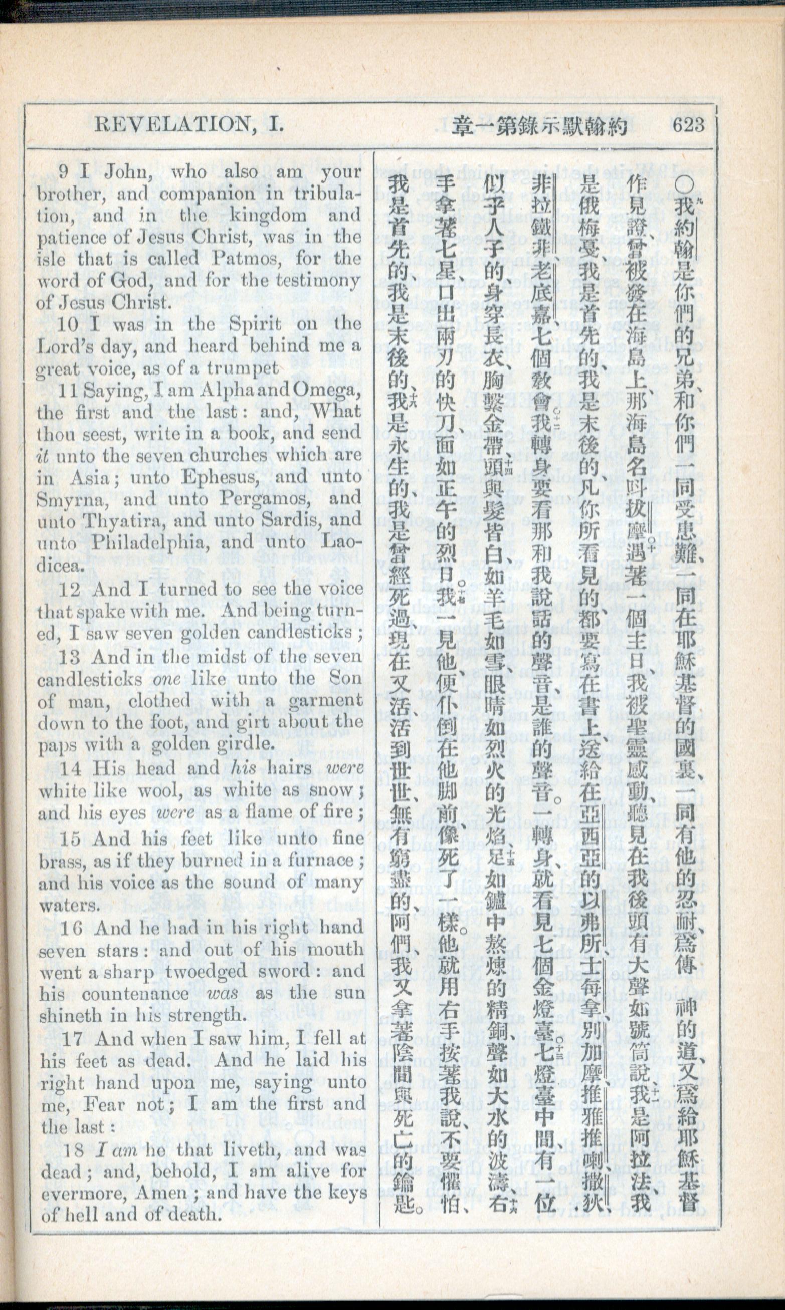 1908年新约全书(中西字) 启示录 1 章 9 节到 1 章 18 节