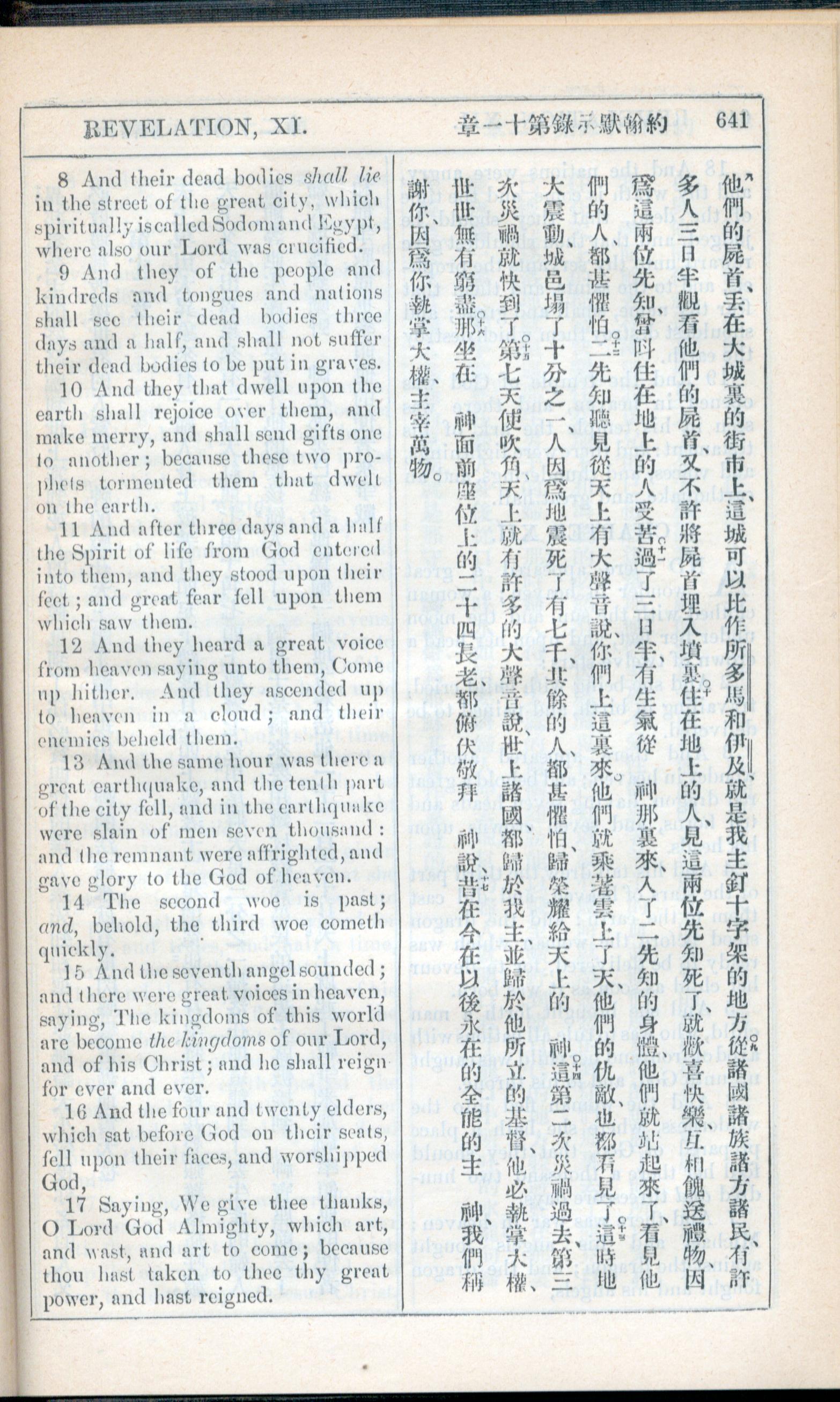 1908年新约全书(中西字) 启示录 11 章 8 节到 11 章 17 节