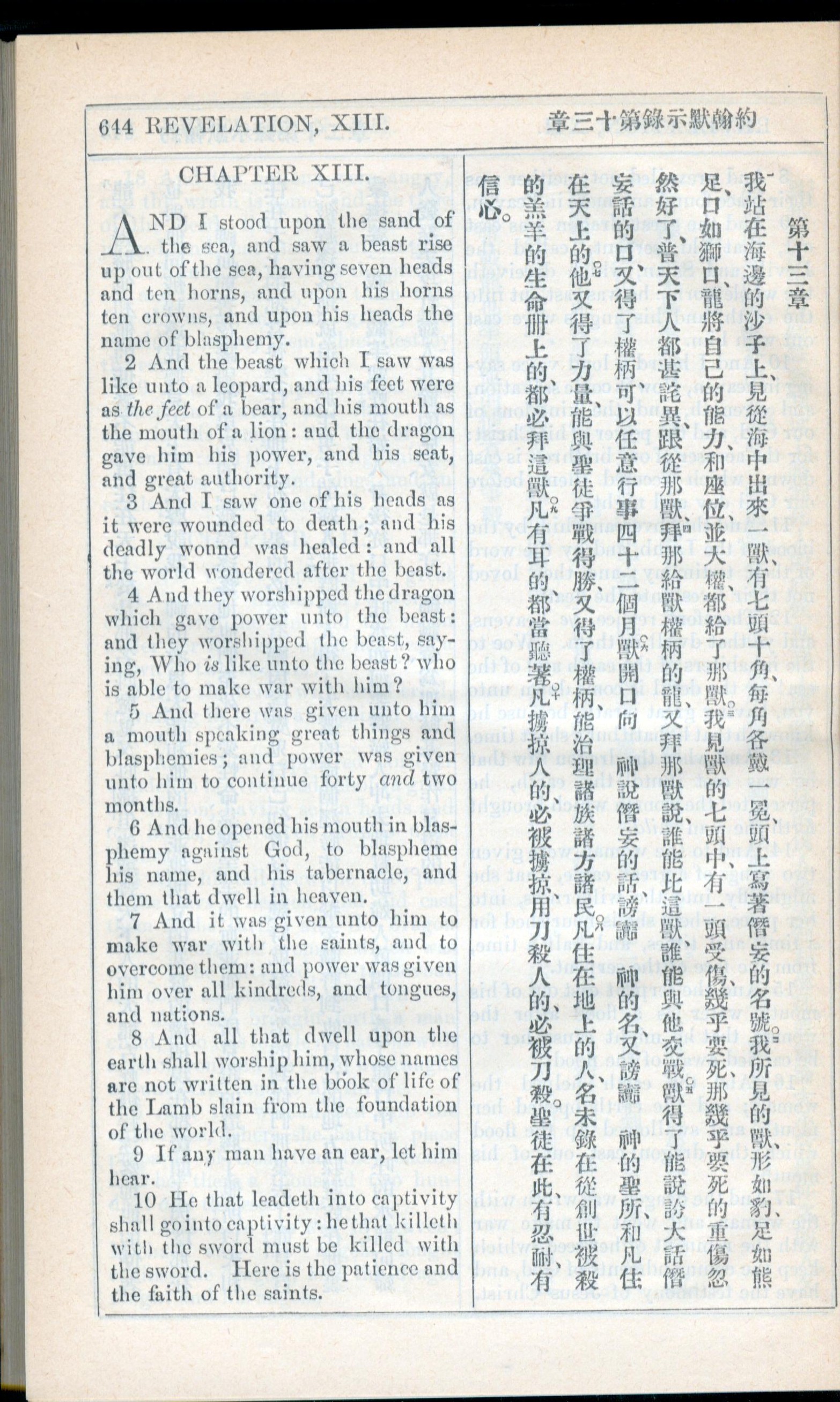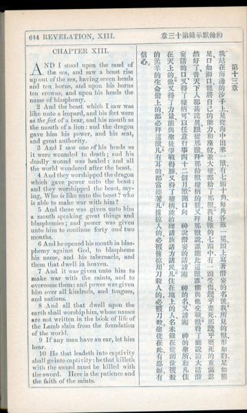 1908年新约全书(中西字) 启示录 13 章 1 节到 13 章 10 节