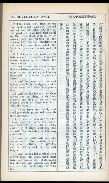1908年新约全书(中西字) 启示录 17 章 8 节到 17 章 16 节