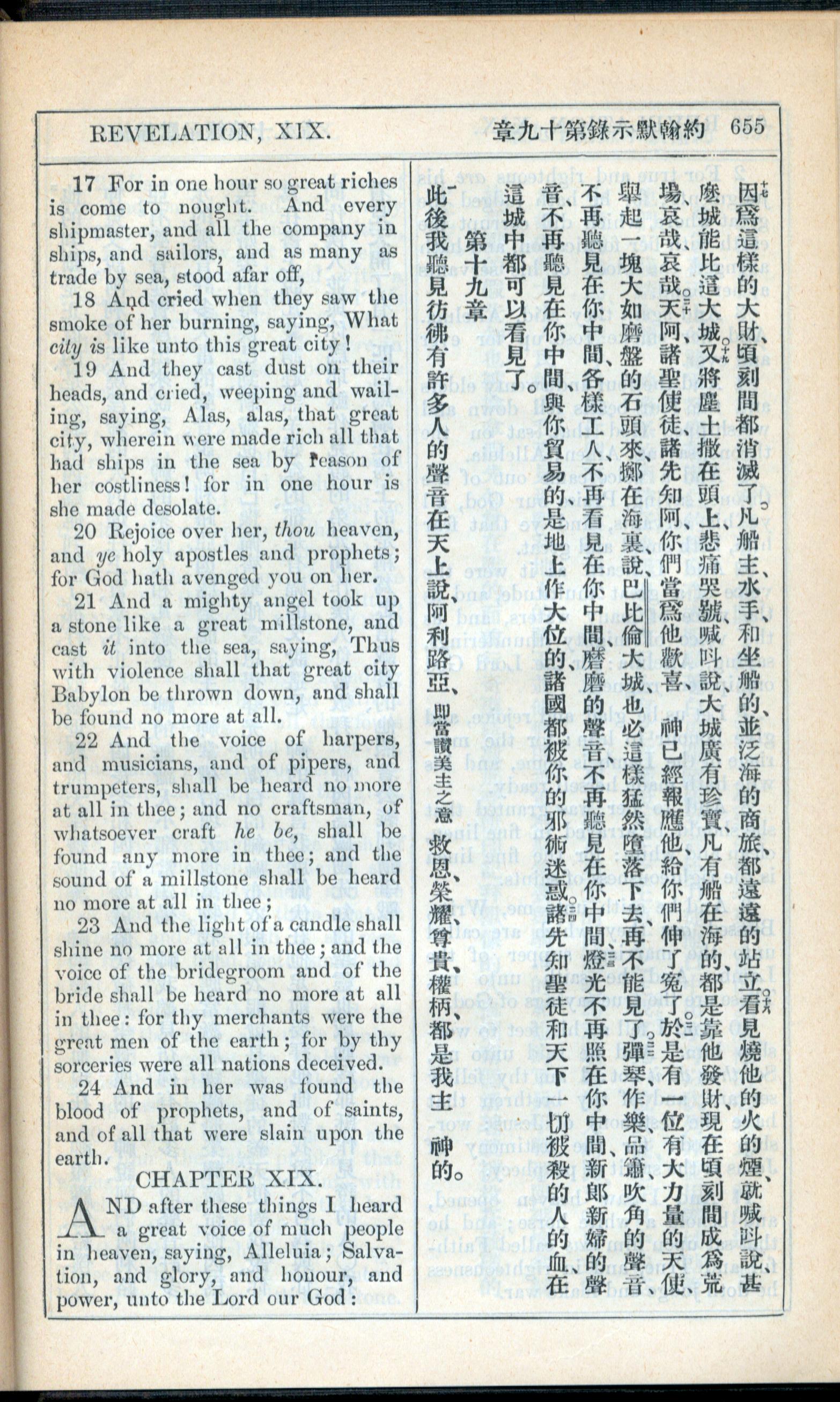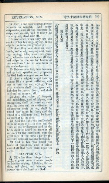 1908年新约全书(中西字) 启示录 18 章 17 节到 19 章 1 节