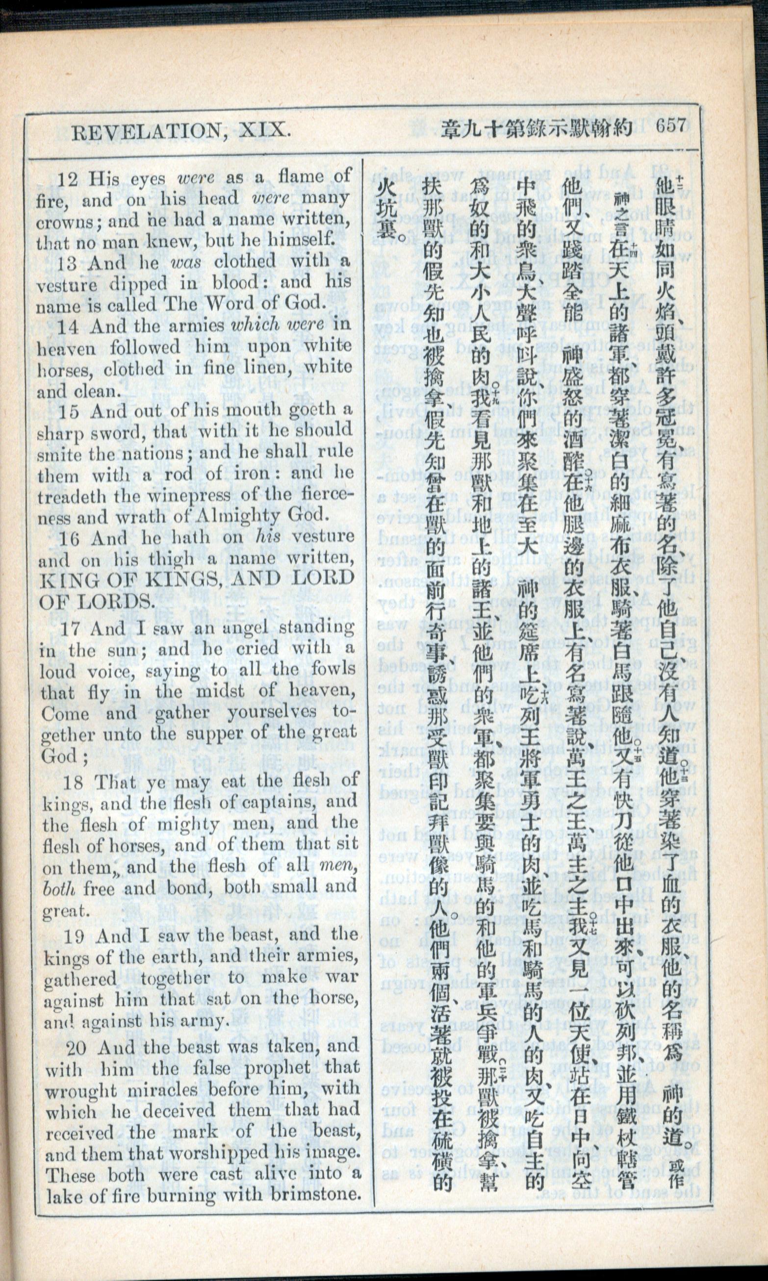 1908年新约全书(中西字) 启示录 19 章 12 节到 19 章 20 节