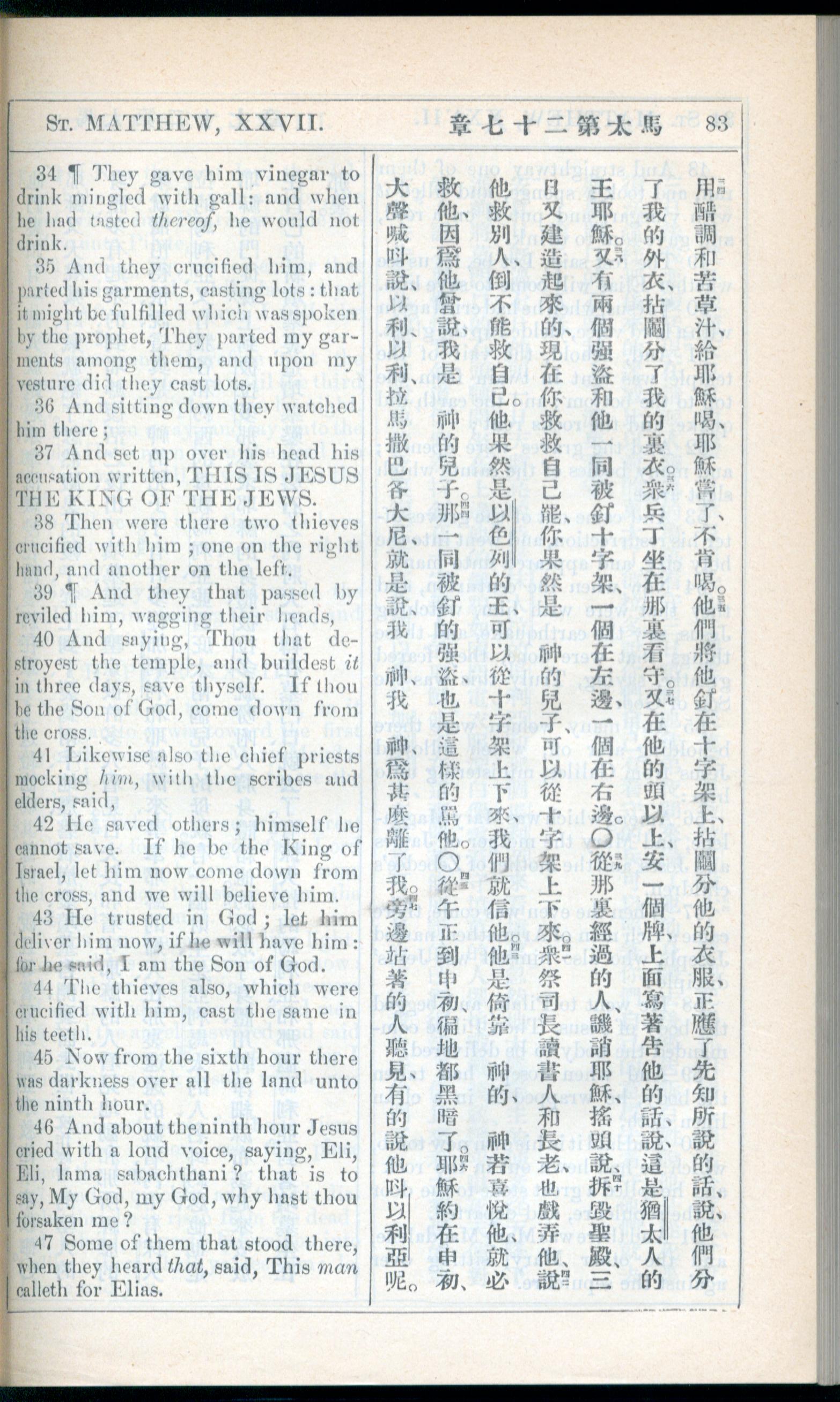 1908年新约全书(中西字) 马太福音 27 章 34 节到 27 章 47 节