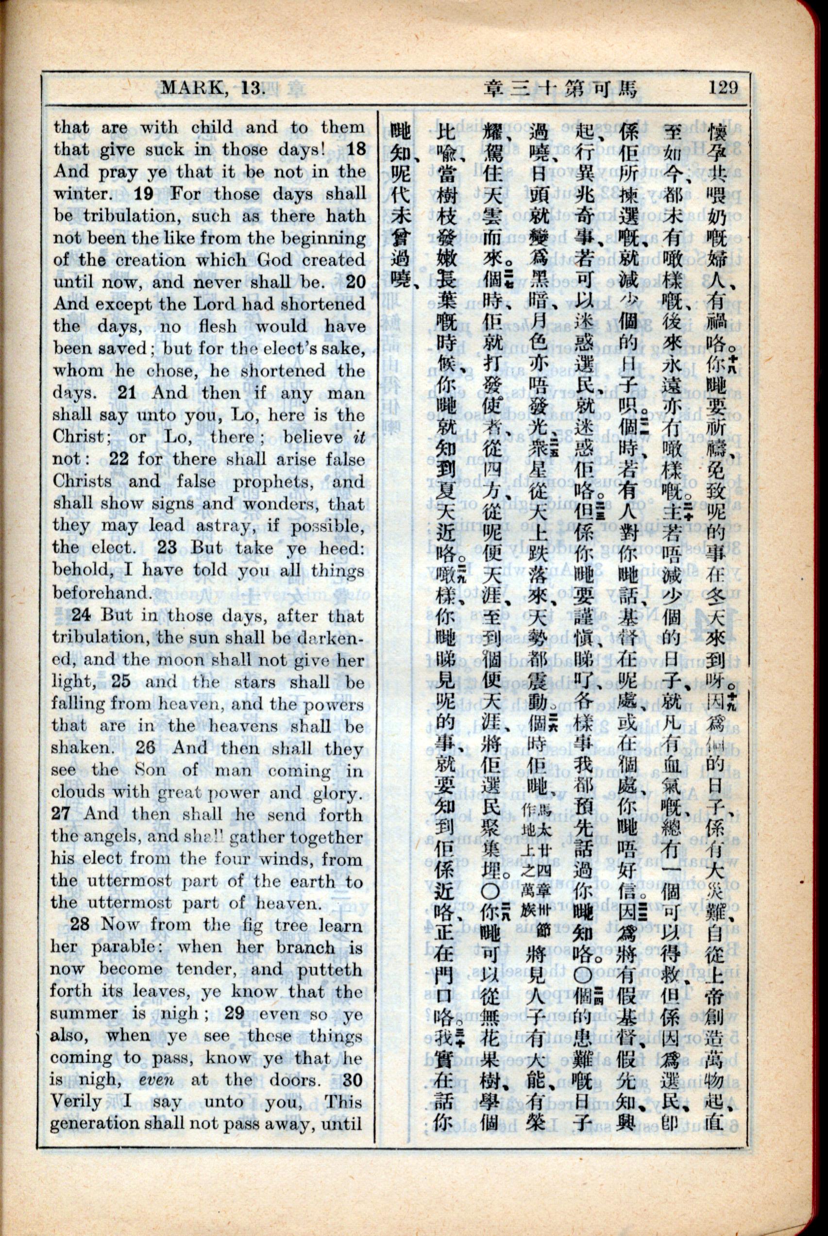 1931年新约全书广东话新译本与美国新译英文 马可福音 13 章 17 节到 13 章 30 节
