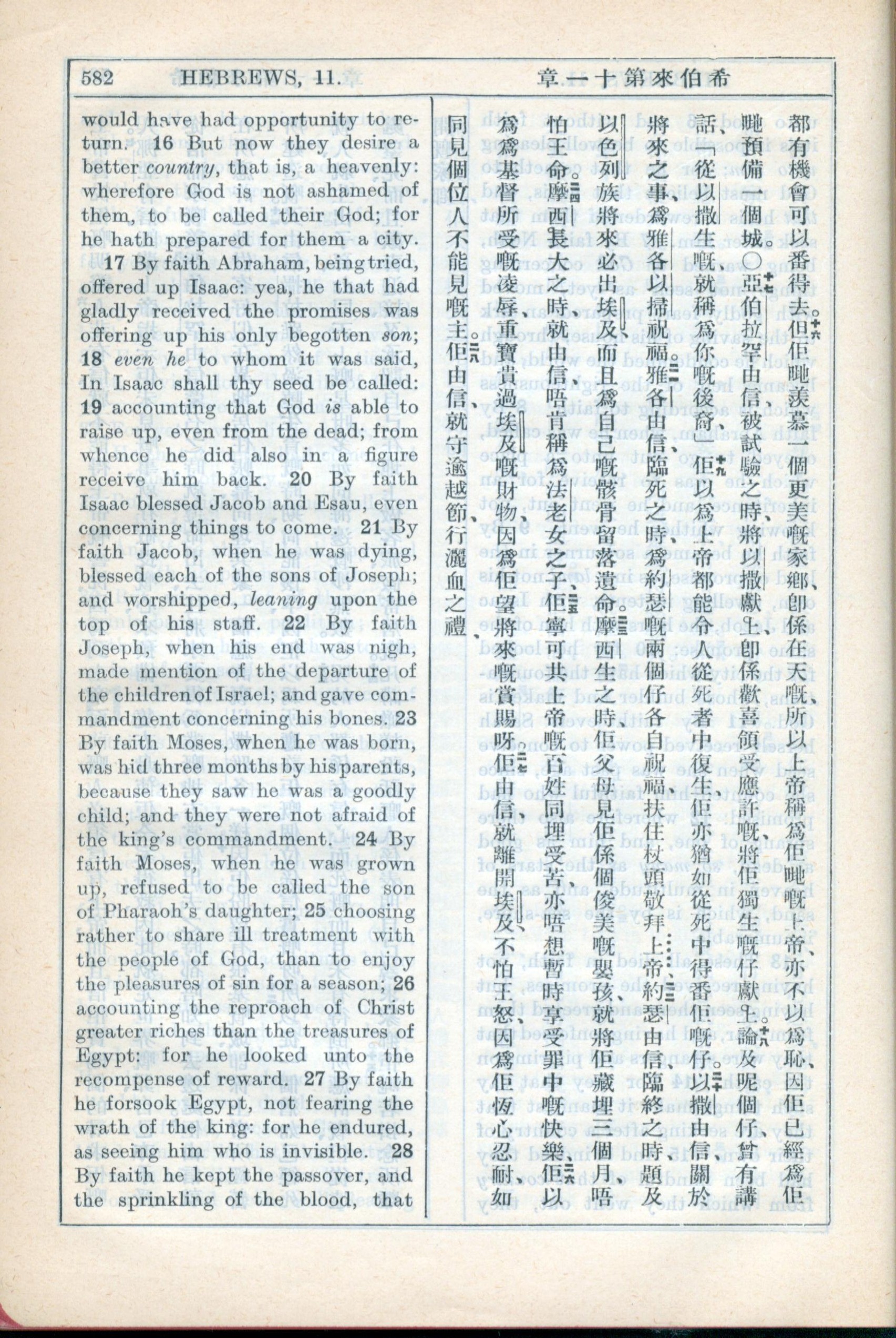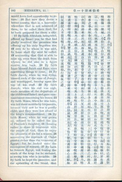 1931年新约全书广东话新译本与美国新译英文 希伯来书 11 章 16 节到 11 章 28 节