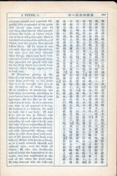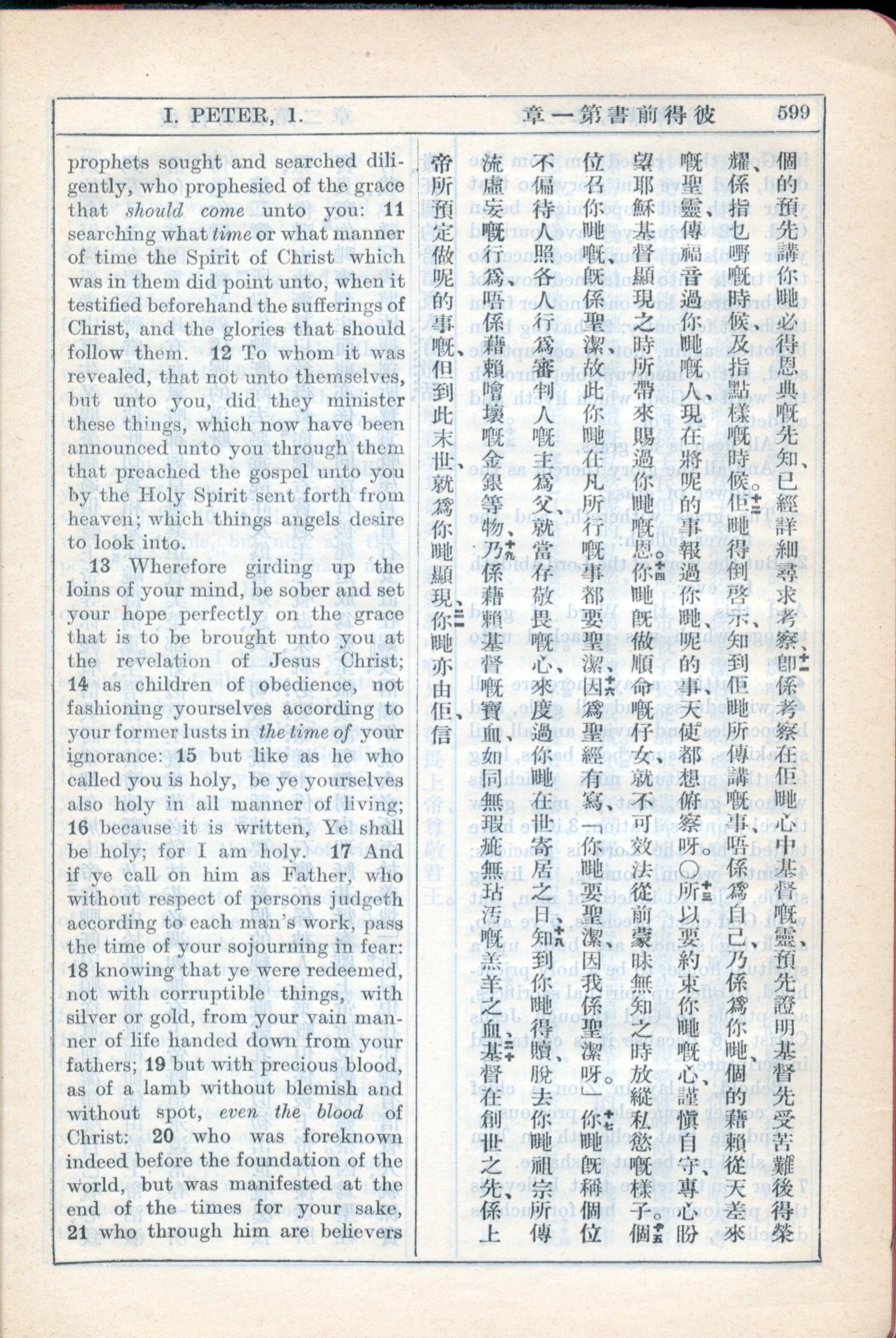 1931年新约全书广东话新译本与美国新译英文 彼得前书 1 章 11 节到 1 章 21 节