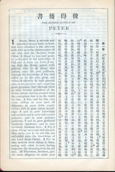 1931年新约全书广东话新译本与美国新译英文 彼得后书 1 章 1 节到 1 章 10 节