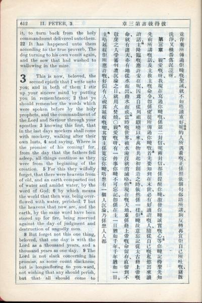 1931年新约全书广东话新译本与美国新译英文 彼得后书 2 章 22 节到 3 章 9 节