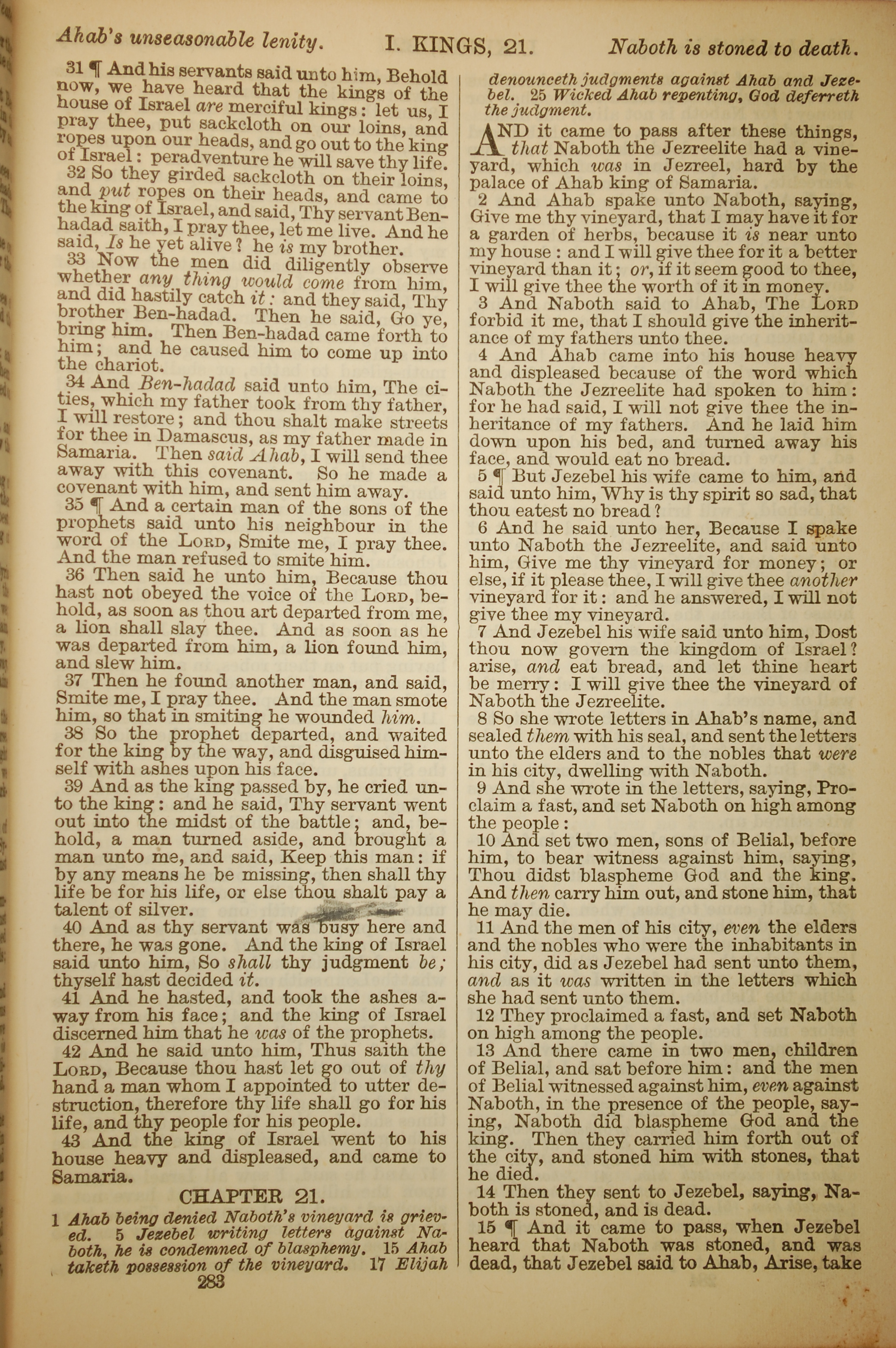 1886年英文圣经 列王纪上 20 章 31 节到 21 章 15 节