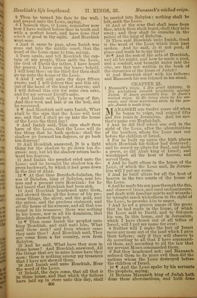 1886年英文圣经 列王纪下 20 章 2 节到 21 章 11 节