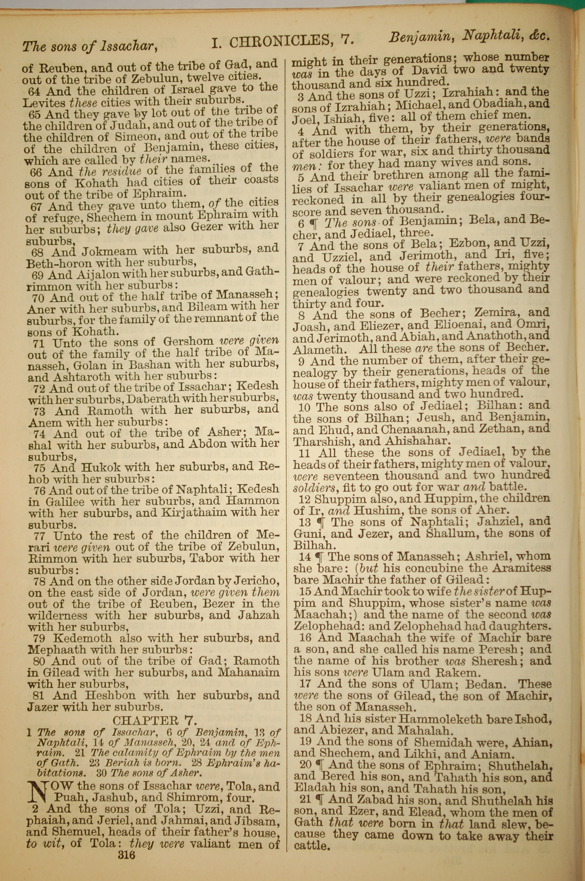 1886年英文圣经 历代志上 6 章 64 节到 7 章 21 节