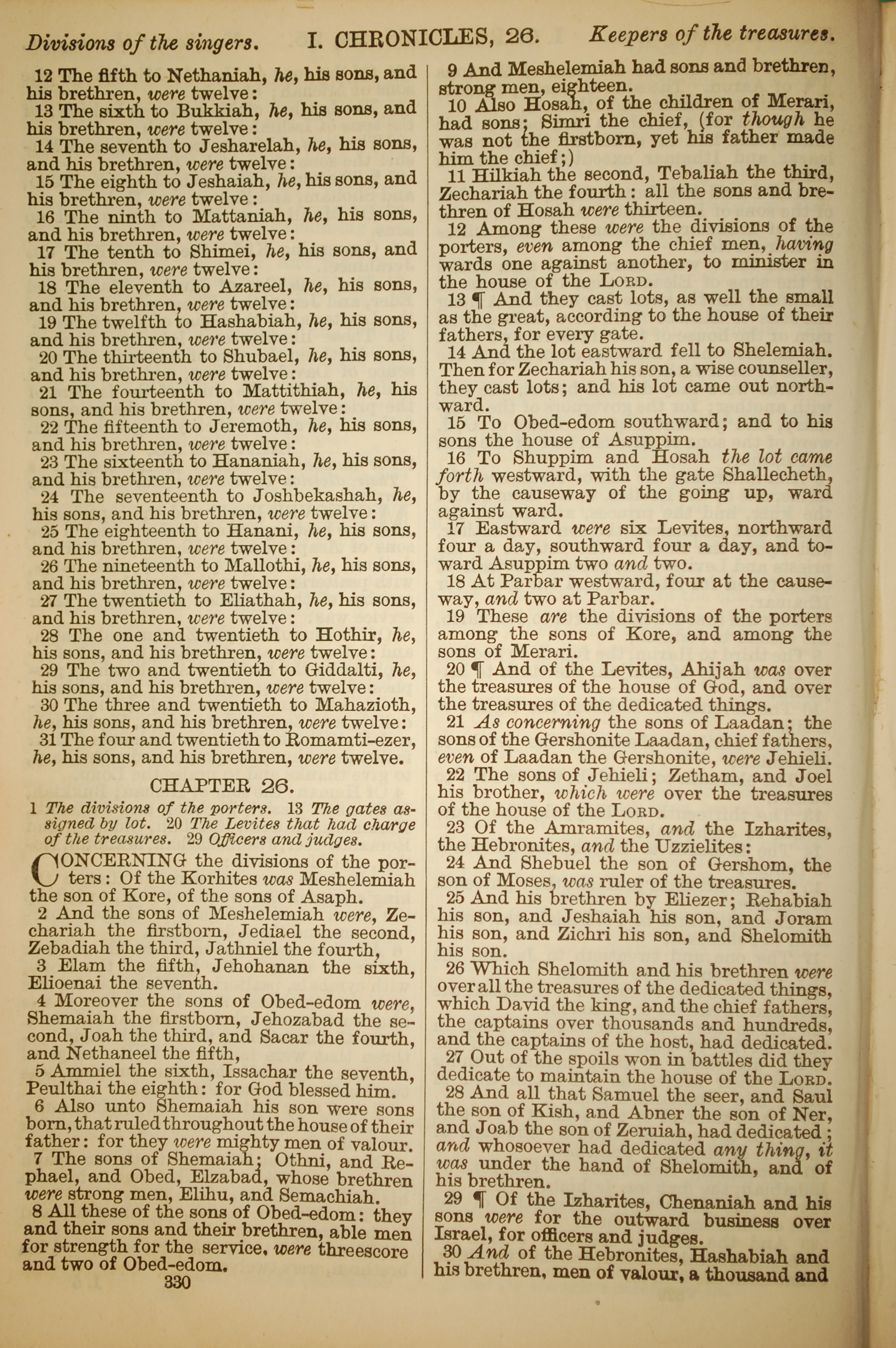 1886年英文圣经 历代志上 25 章 12 节到 26 章 30 节