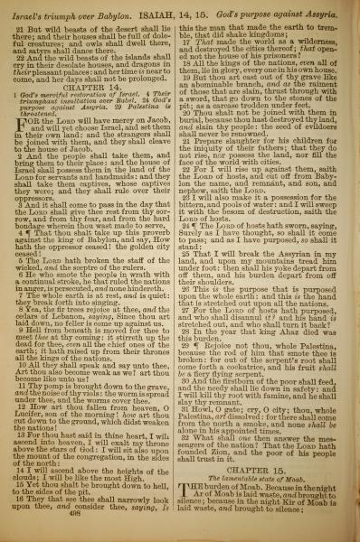 1886年英文圣经 以赛亚书 13 章 21 节到 15 章 1 节