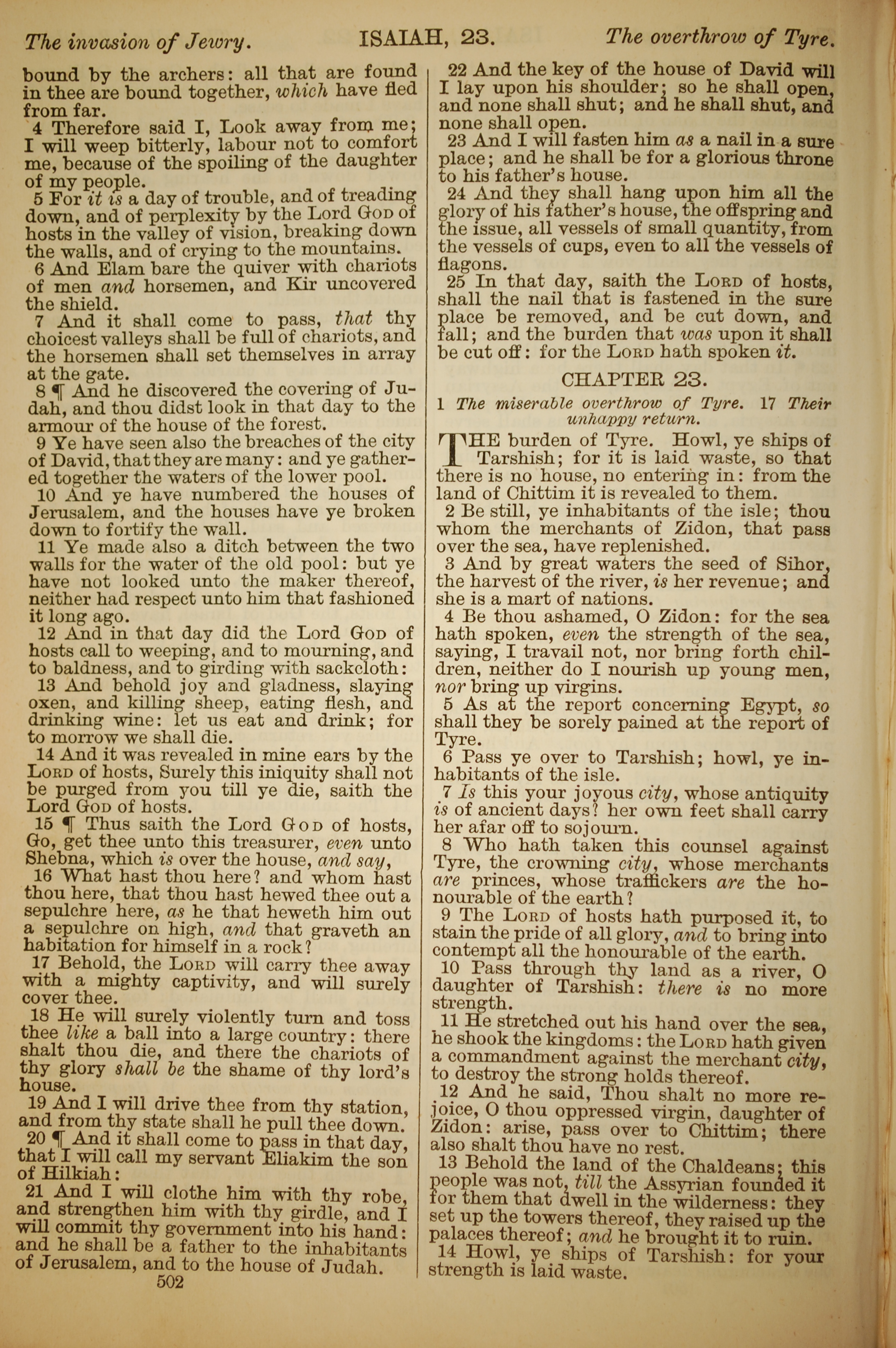 1886年英文圣经 以赛亚书 22 章 4 节到 23 章 14 节