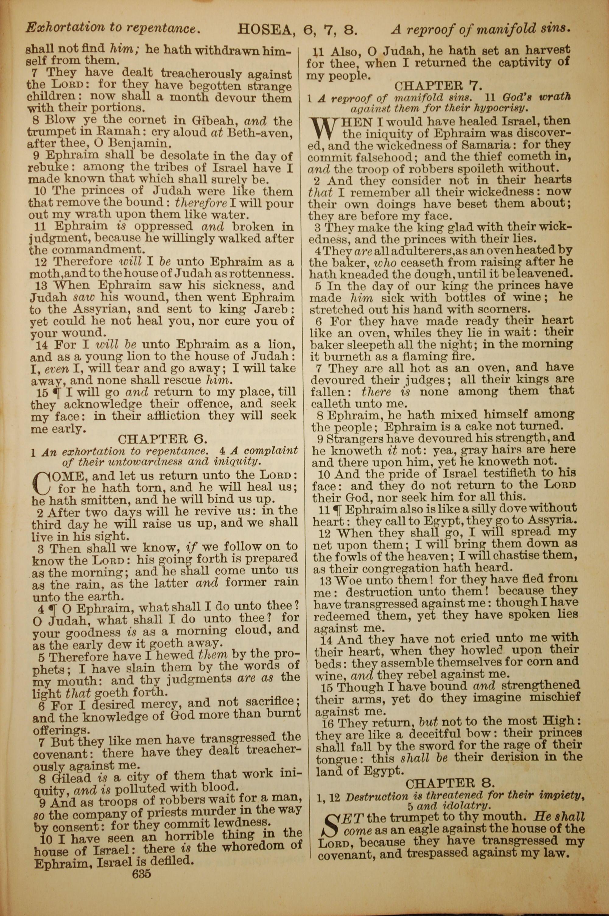 1886年英文圣经 何西阿书 5 章 7 节到 8 章 1 节