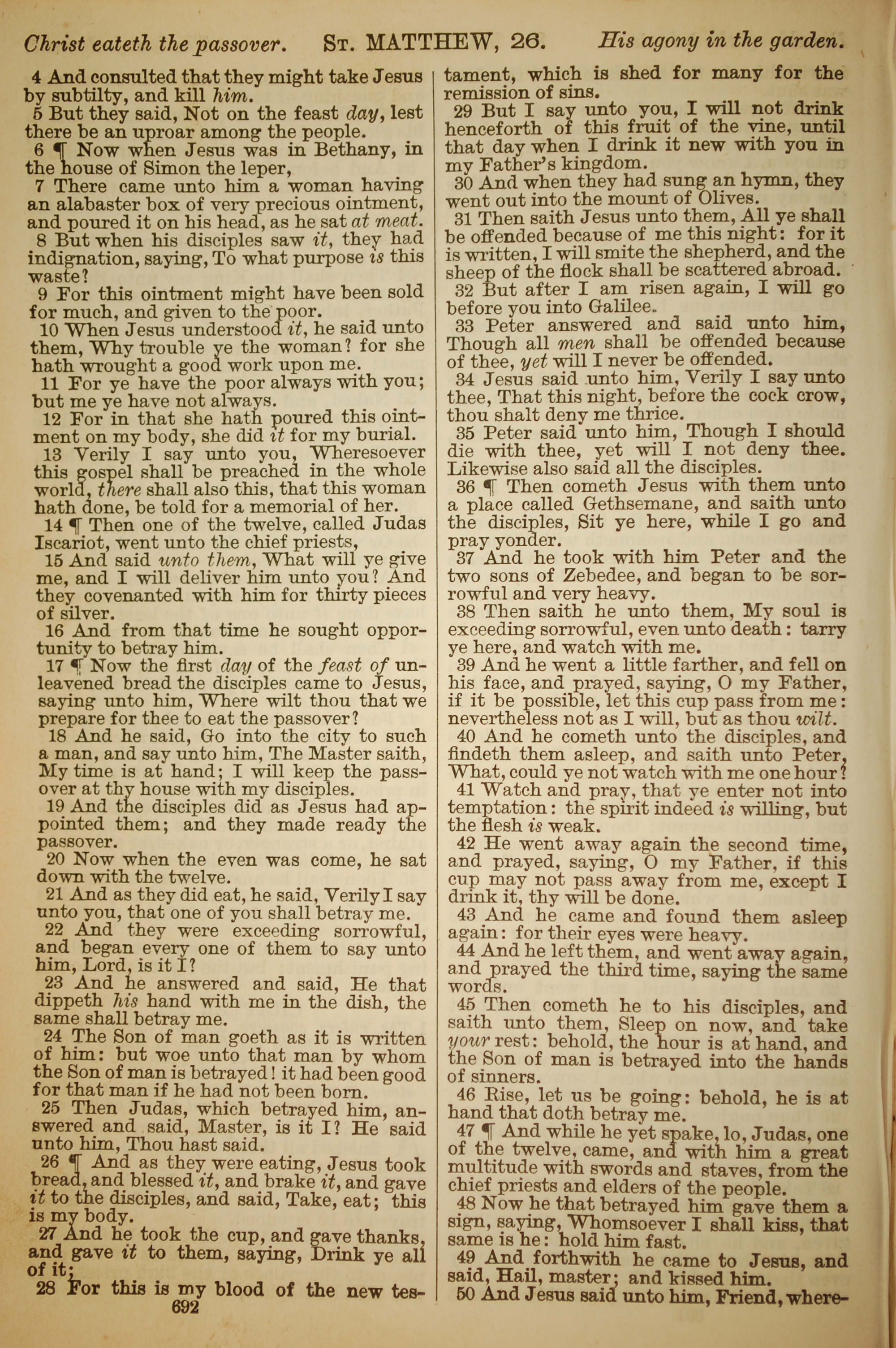 1886年英文圣经 马太福音 26 章 4 节到 26 章 50 节