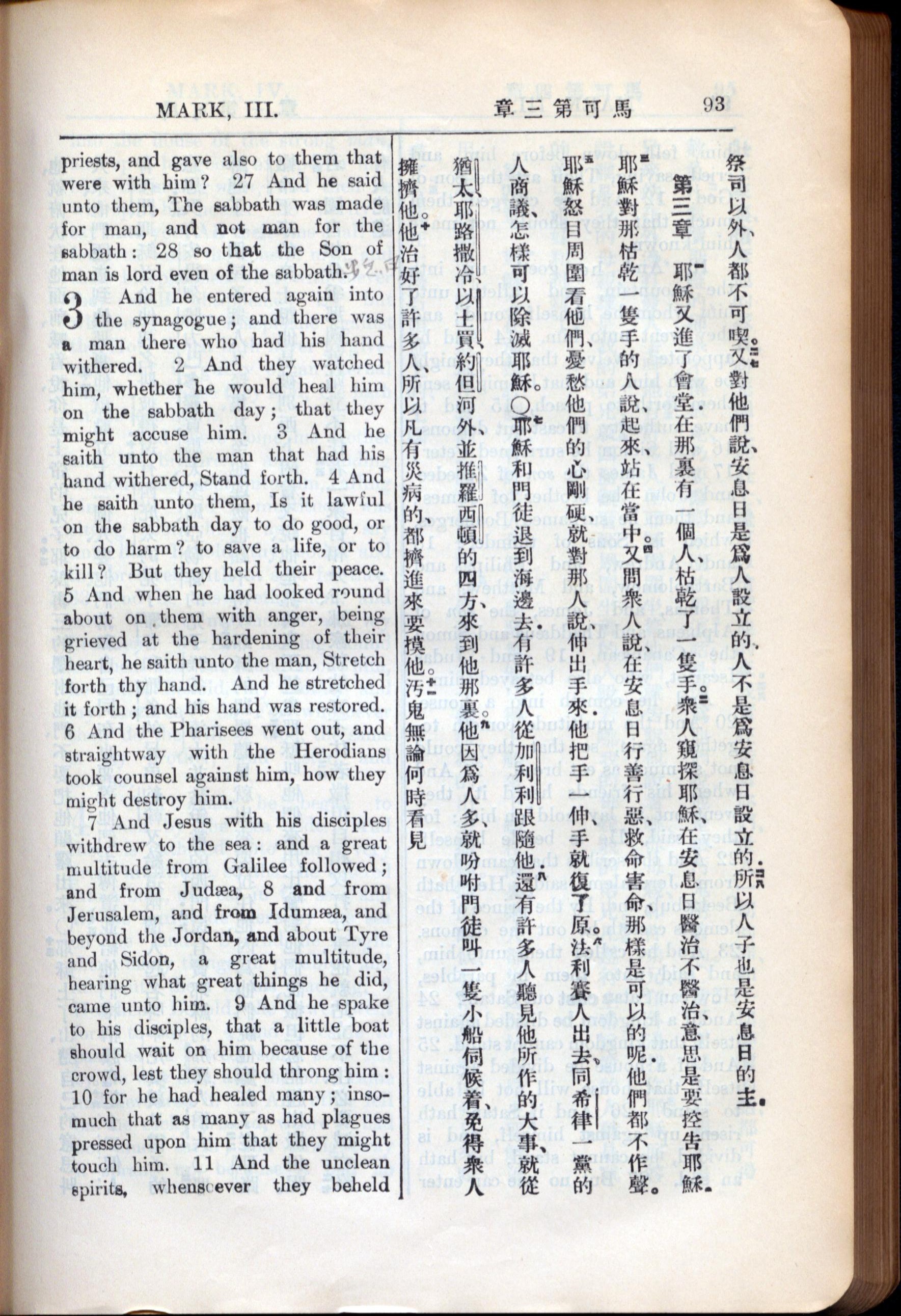 1936年新约全书 马可福音 2 章 27 节到 3 章 11 节
