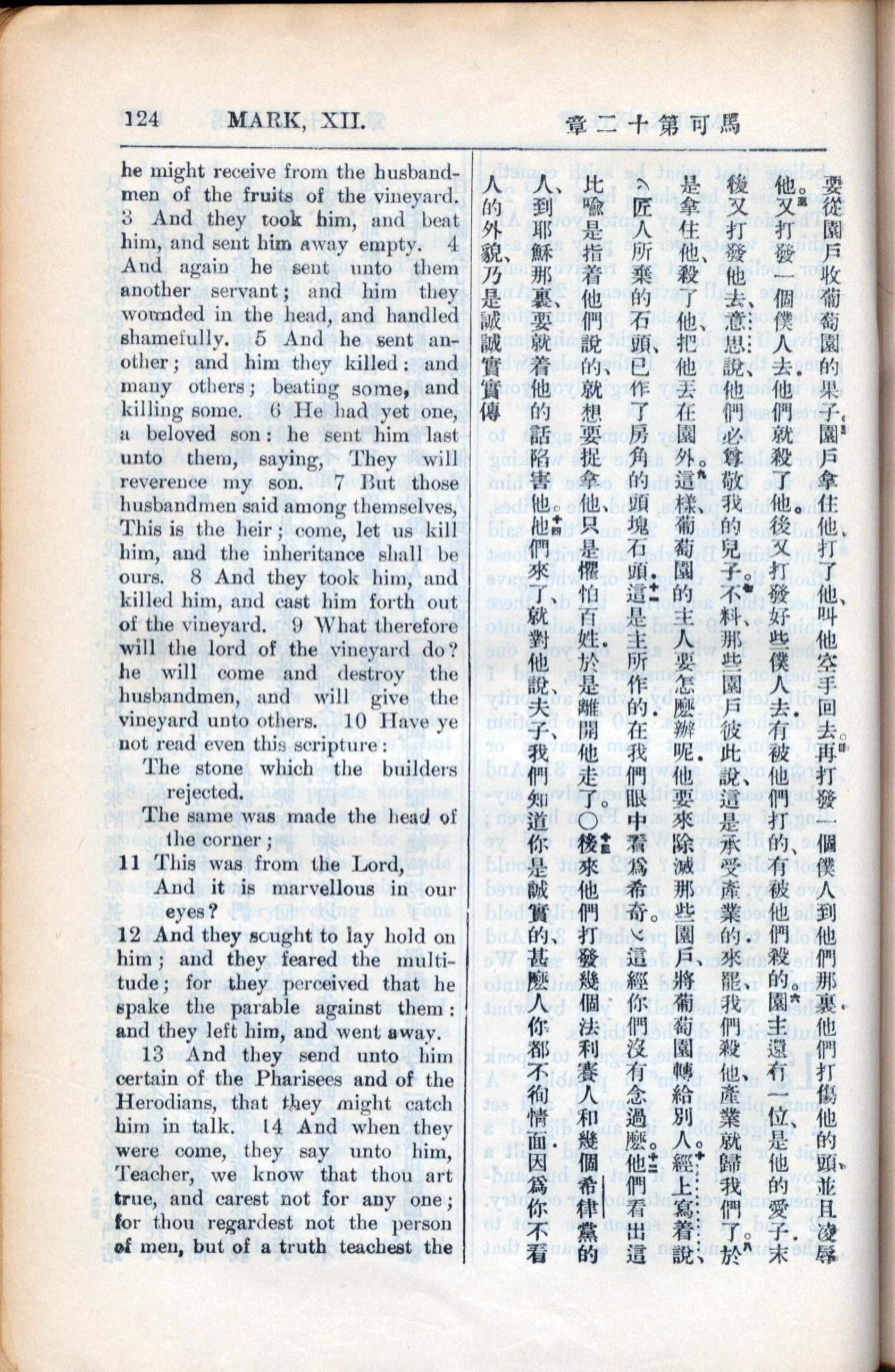 1936年新约全书 马可福音 12 章 3 节到 12 章 14 节