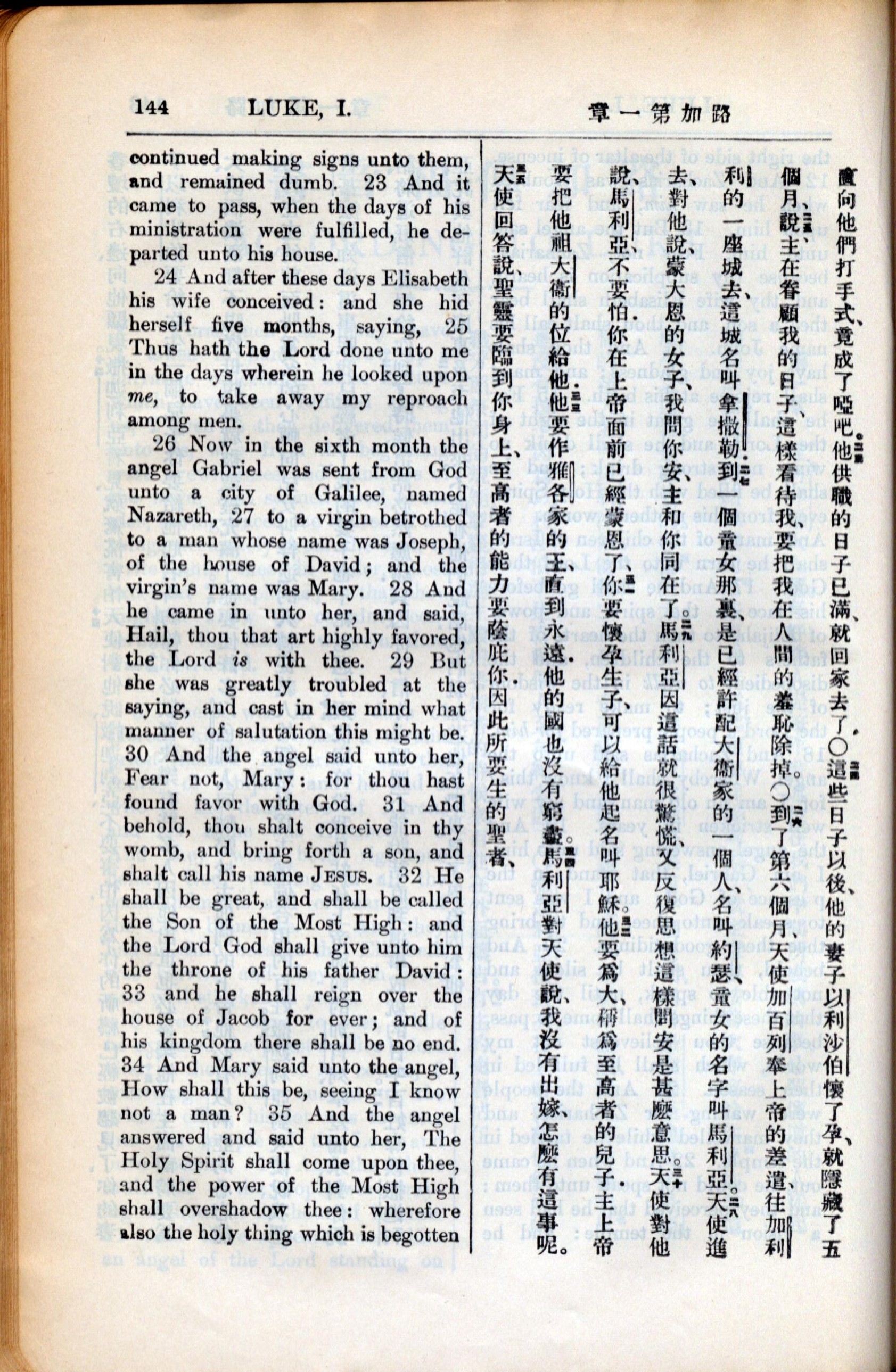 1936年新约全书 路加福音 1 章 23 节到 1 章 35 节