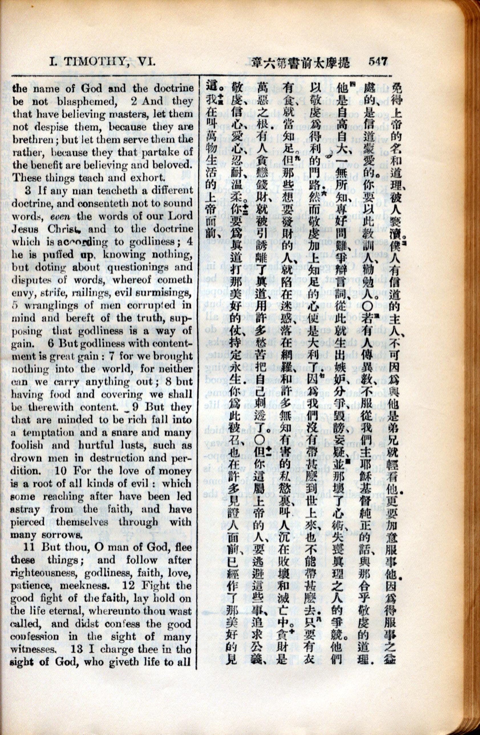 1936年新约全书 提摩太前书 6 章 2 节到 6 章 13 节