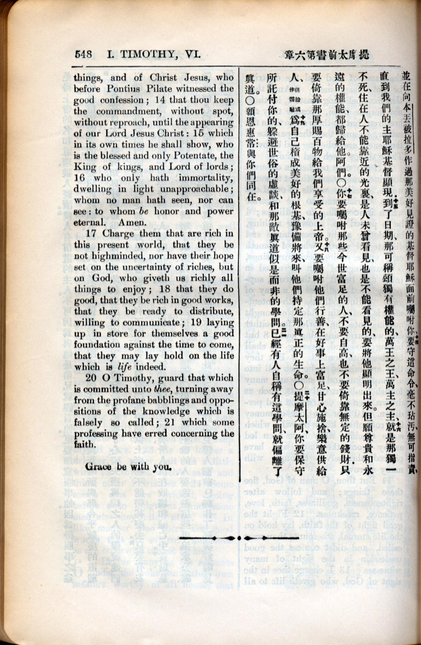 1936年新约全书 提摩太前书 6 章 14 节到 6 章 21 节