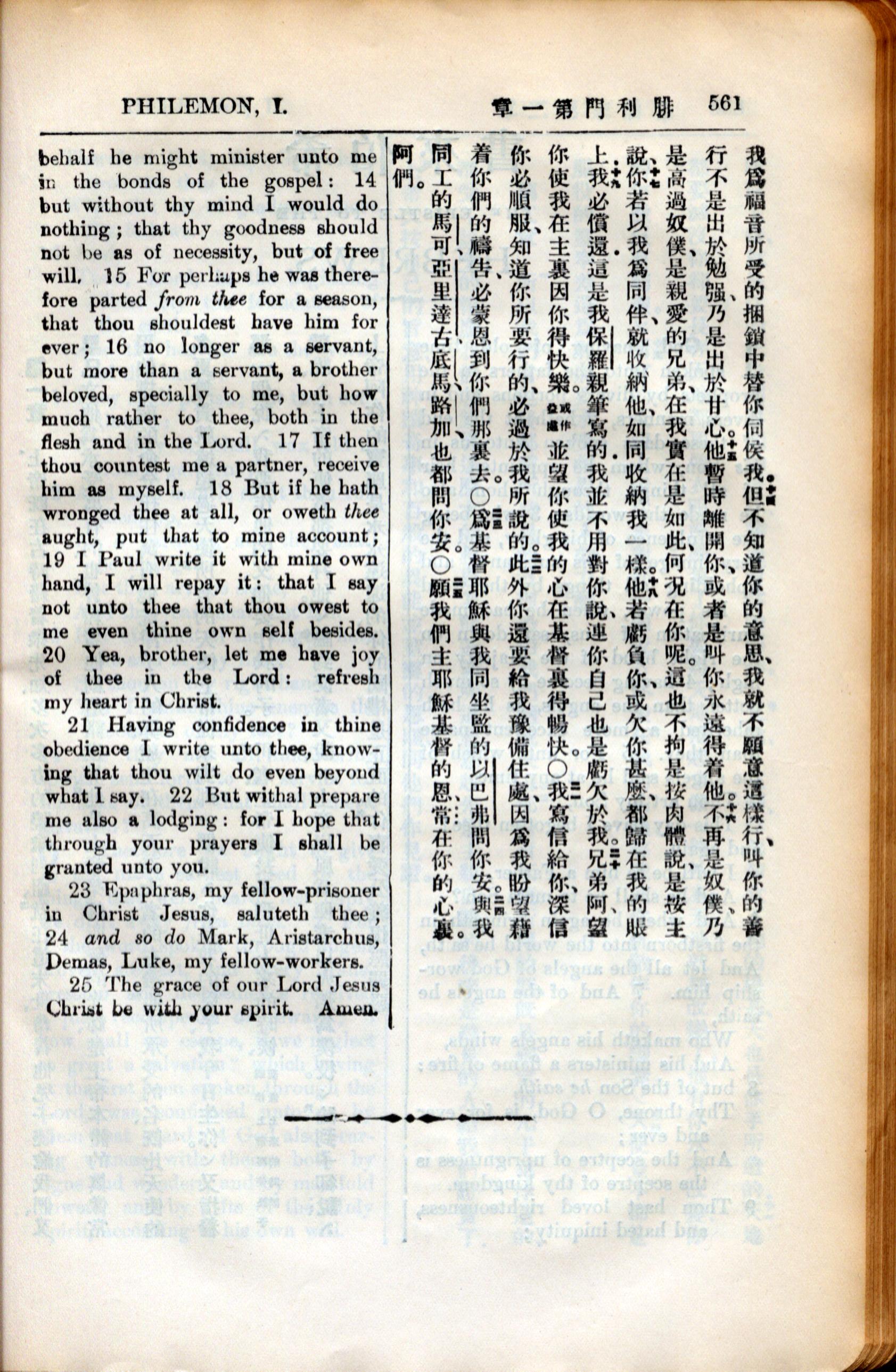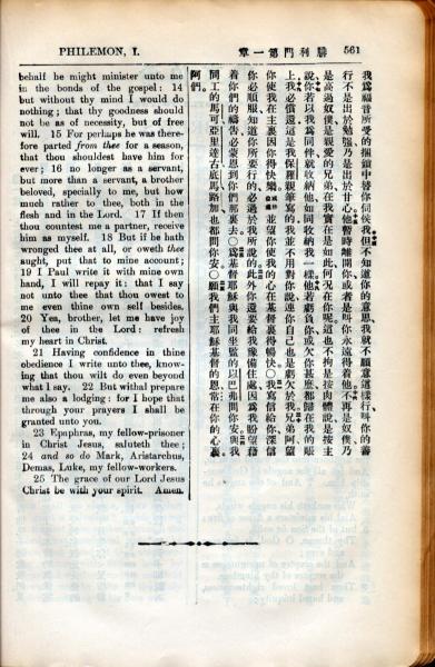 1936年新约全书 腓利门书 1 章 14 节到 1 章 25 节