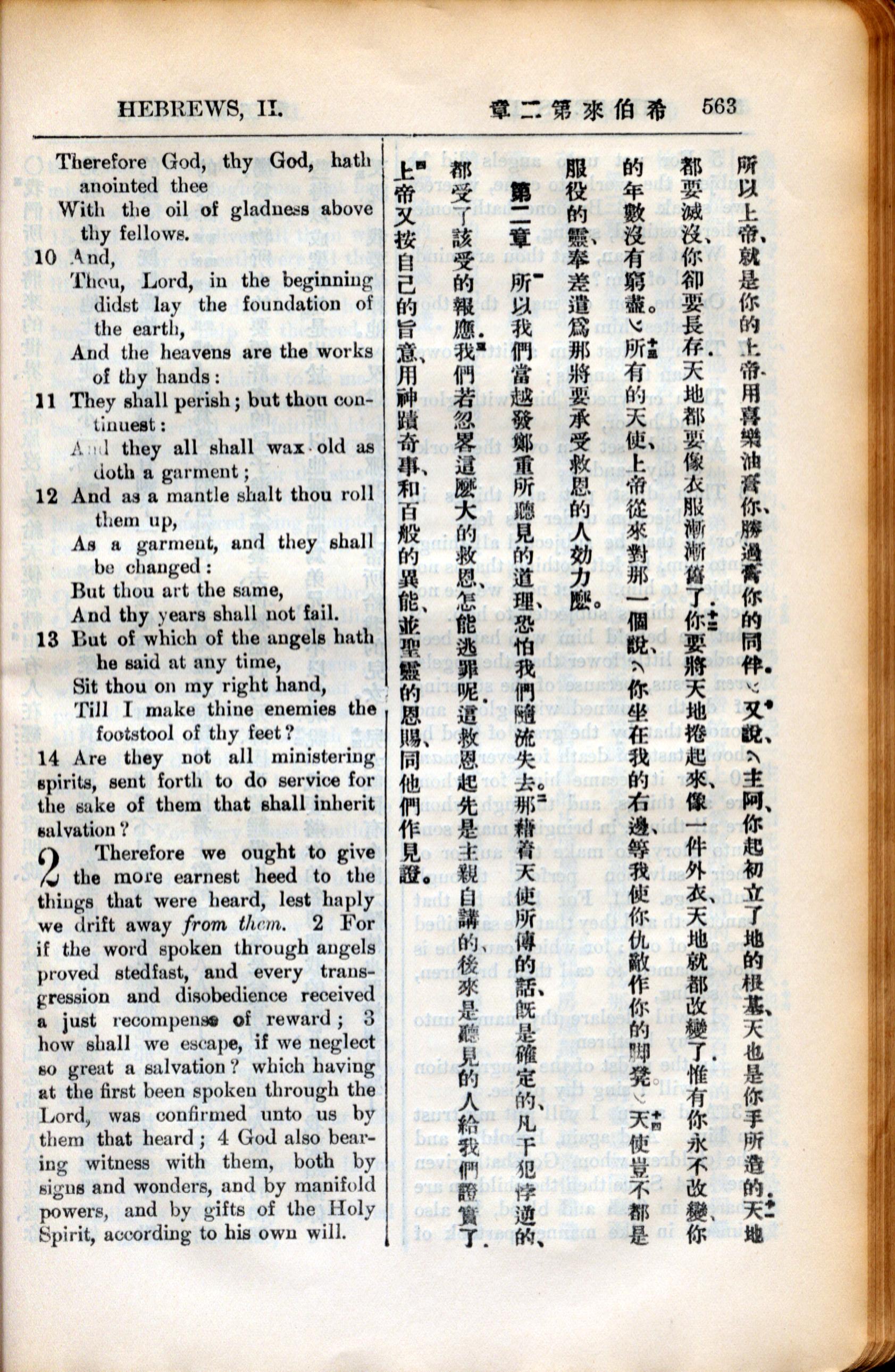 1936年新约全书 希伯来书 1 章 10 节到 2 章 4 节