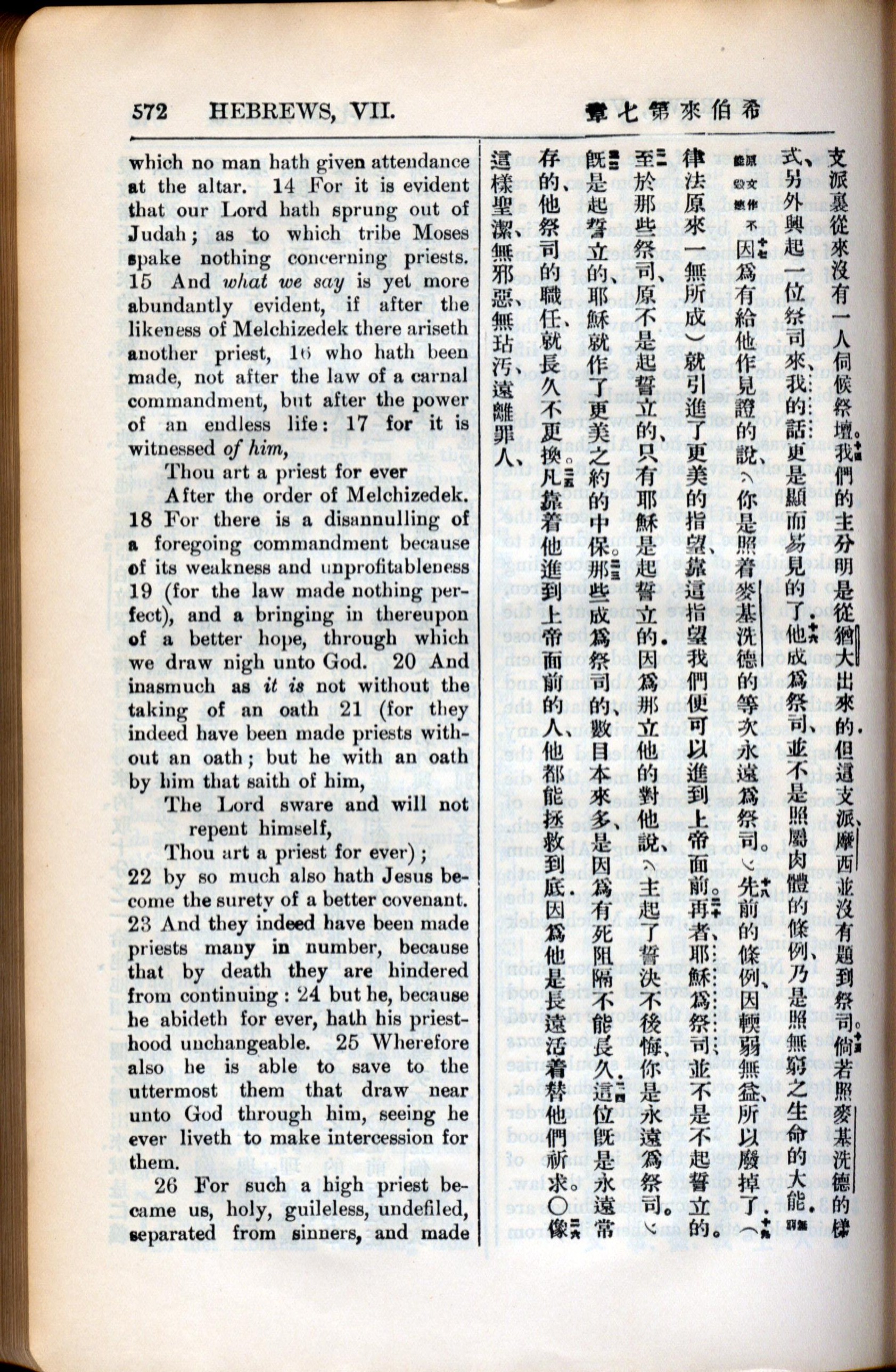 1936年新约全书 希伯来书 7 章 14 节到 7 章 26 节