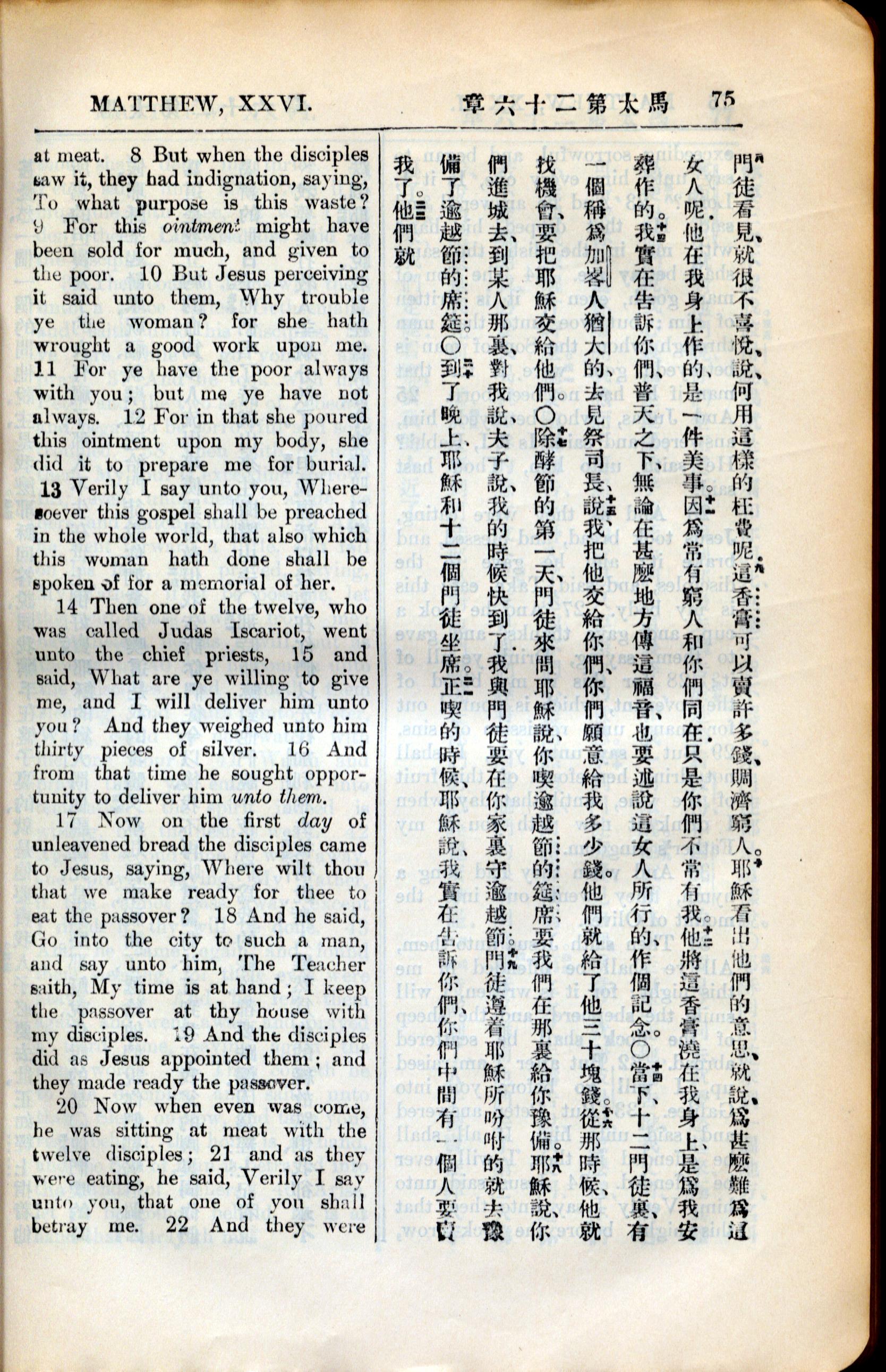 1936年新约全书 马太福音 26 章 8 节到 26 章 21 节