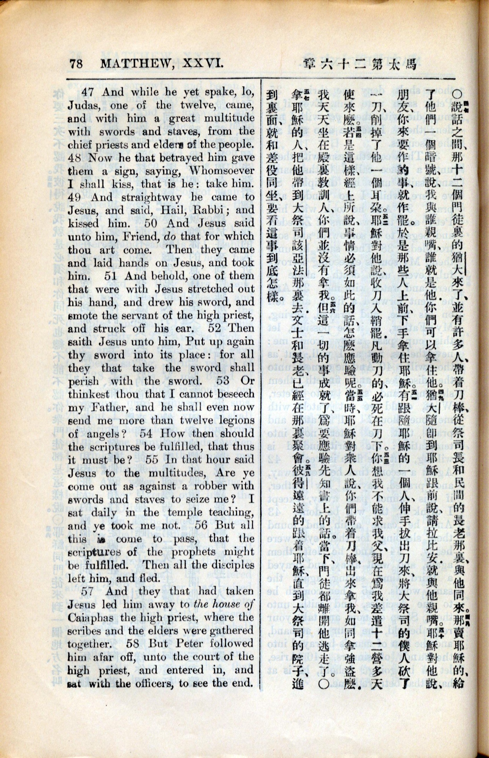 1936年新约全书 马太福音 26 章 47 节到 26 章 58 节