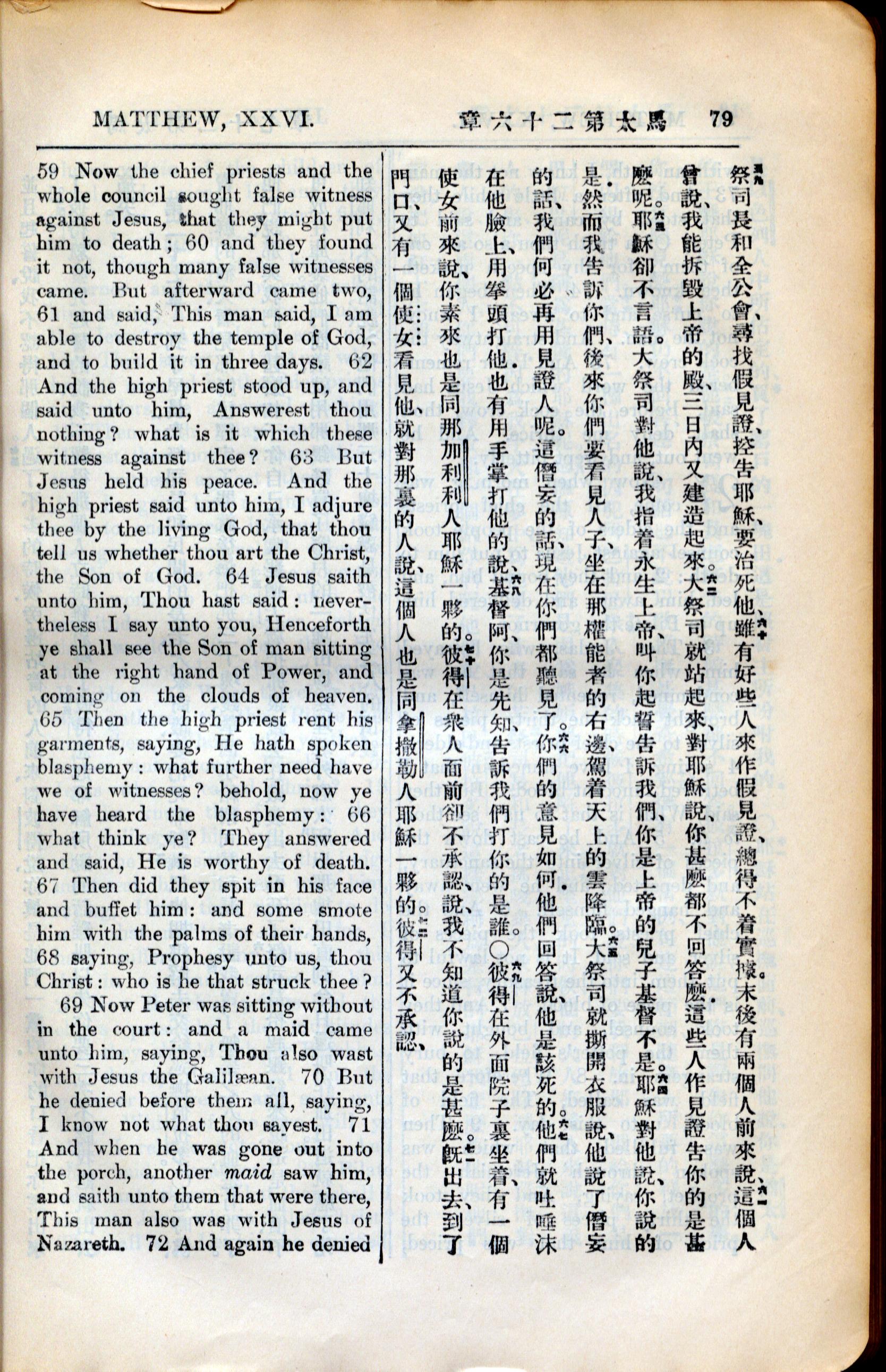 1936年新约全书 马太福音 26 章 59 节到 26 章 71 节