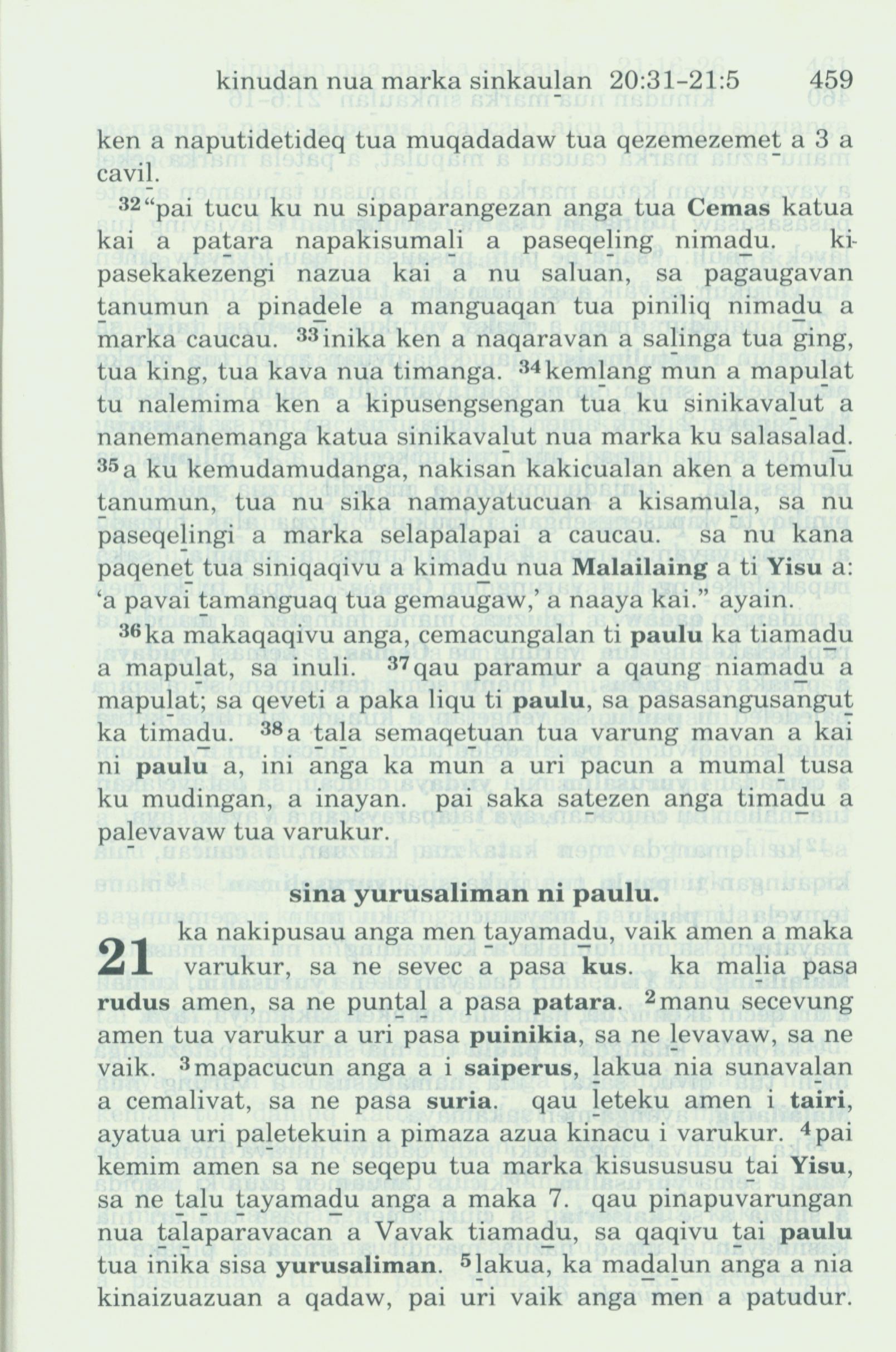 1993年新旧约全书 使徒行传 20 章 32 节到 21 章 5 节