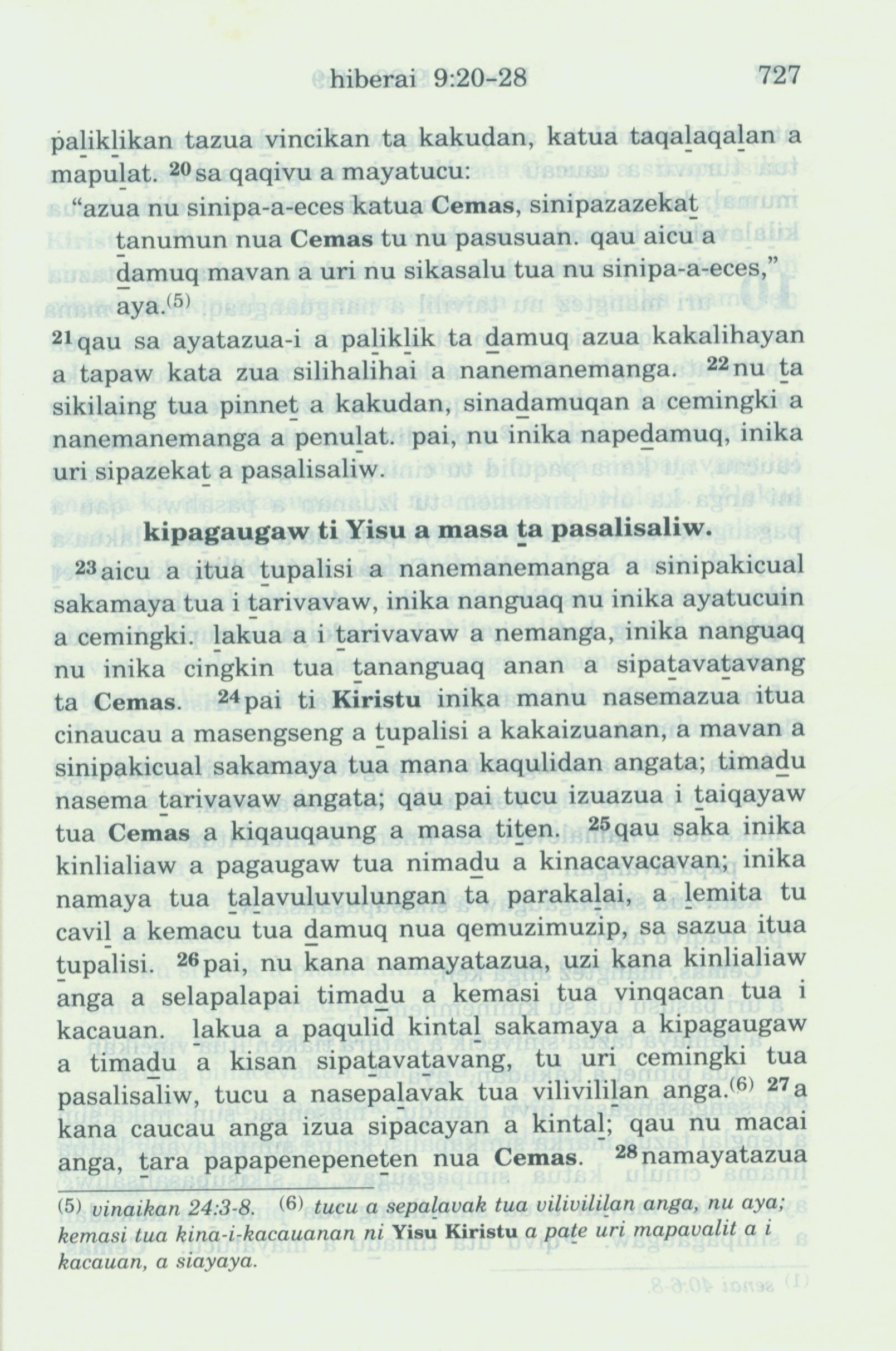 1993年新旧约全书 希伯来书 9 章 20 节到 9 章 27 节