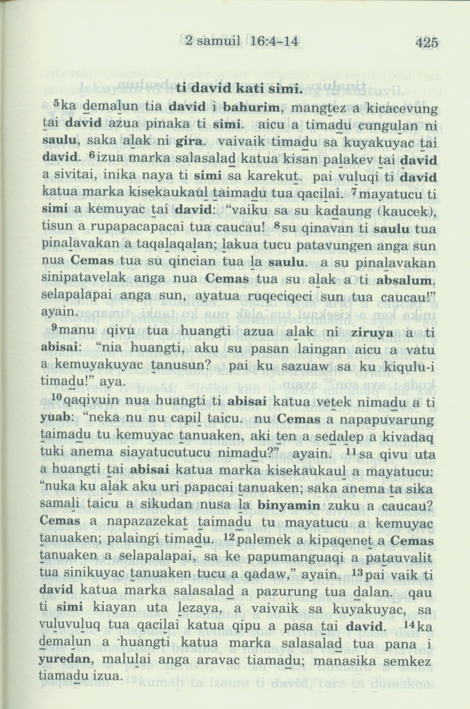 1993年新旧约全书 撒母耳记下 16 章 5 节到 16 章 14 节